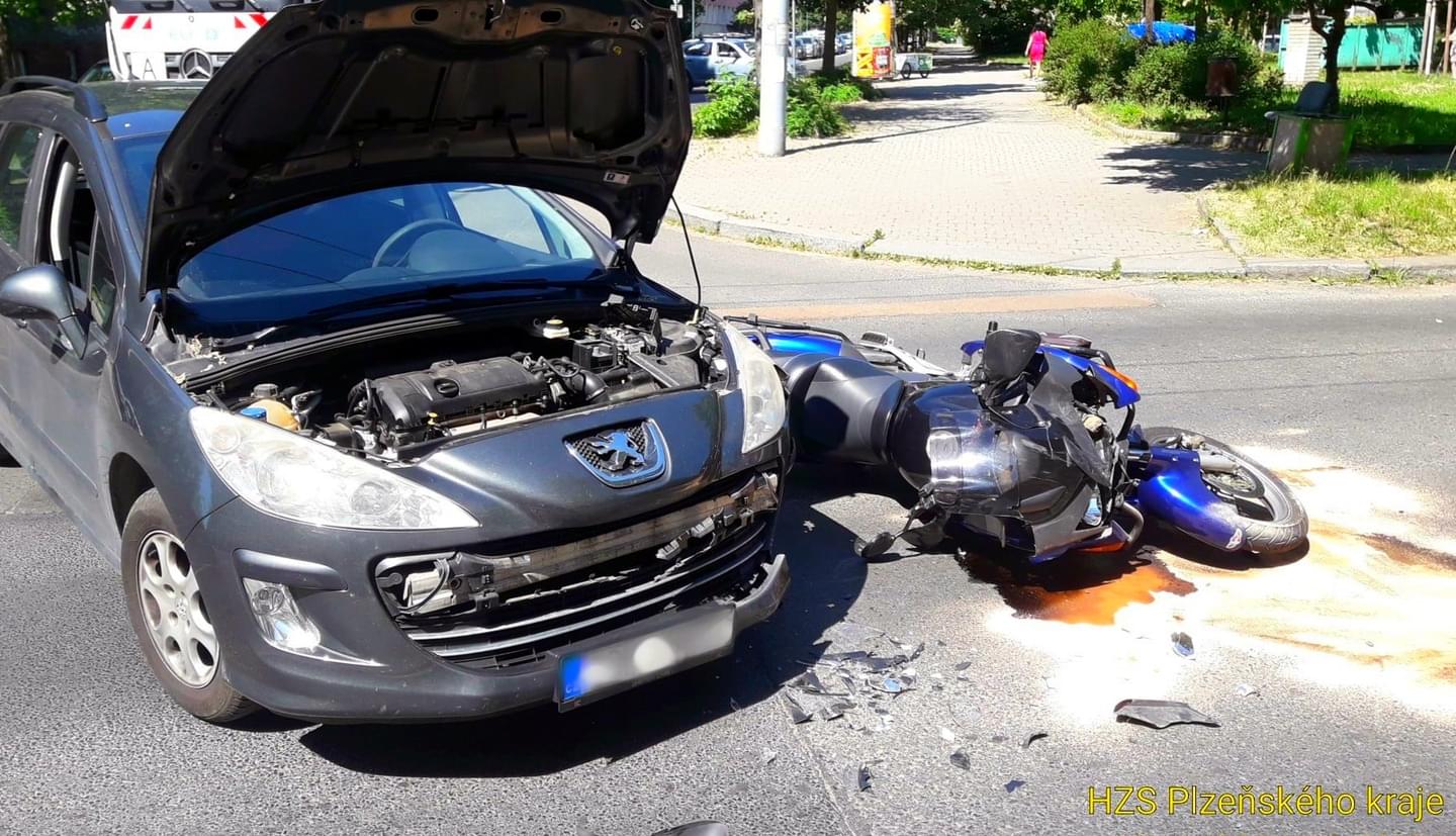 Dnes v půl jedenácté dopoledne došlo na náměstí Českých bratří v Plzni ke střetu motocyklu Honda Varadero a osobního vozu Peugeot 308. "Řidička vozidla značky Peugeot narozená v roce 1988 nedala při odbočování vlevo přednost motocyklu značky Honda jedoucímu po ulici Mánesova, který řídil muž narozený v roce 1968, a došlo ke střetu," popsala tisková mluvčí policie.