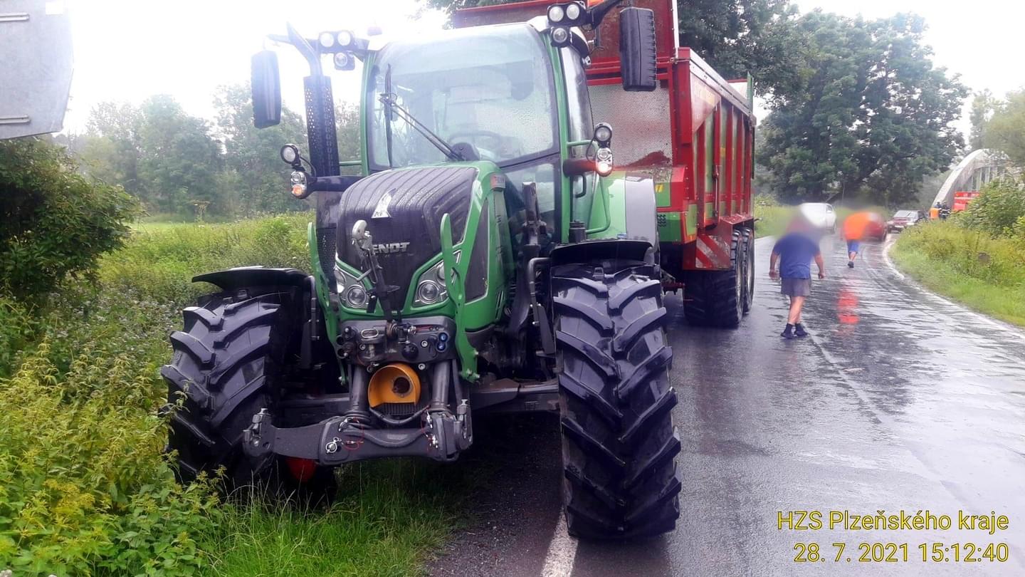 Dnes před třetí hodinou odpoledne došlo u Lužan na Přešticku k dopravní nehodě, při které se střetl osobní automobil Renault Megane s traktorem Fendt. K nehodě vyjeli hasiči i policisté, silnice byla v jednom pruhu uzavřena, hasiči zajistili místo události a provedli protipožární opatření.
