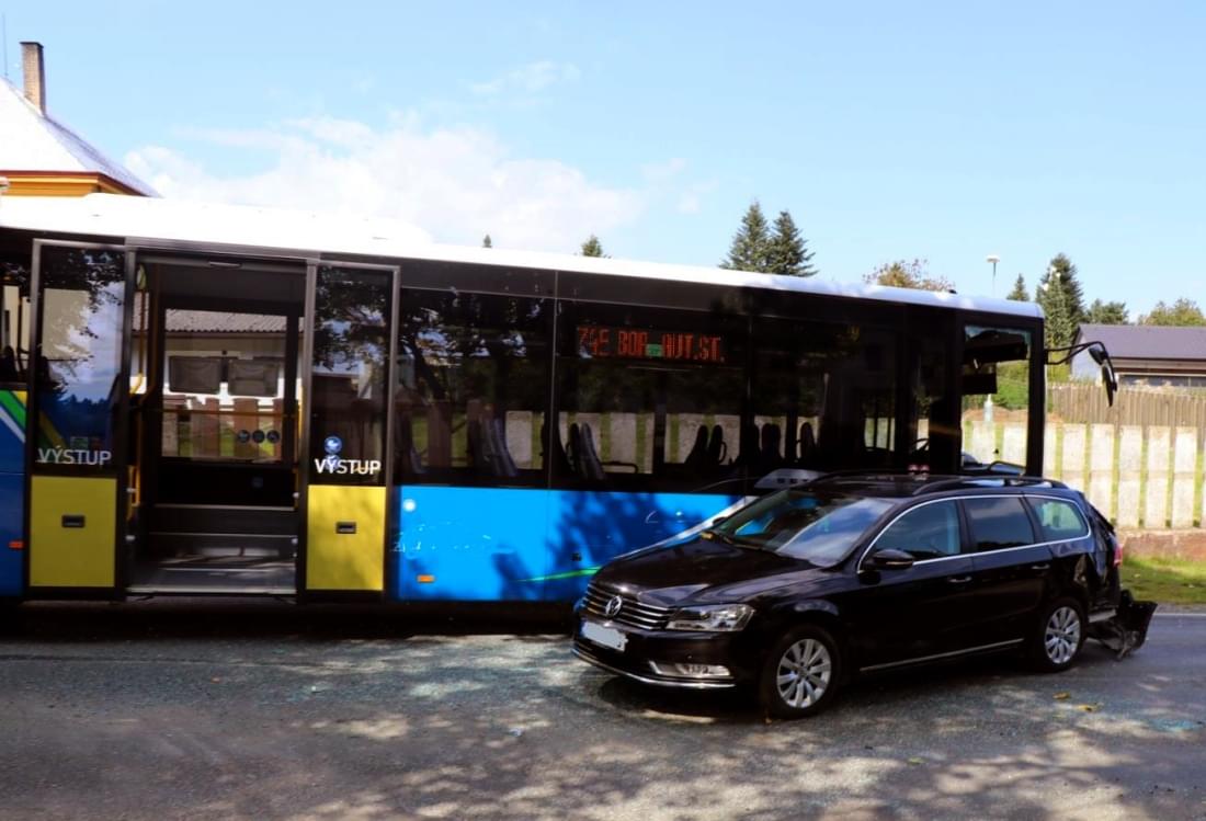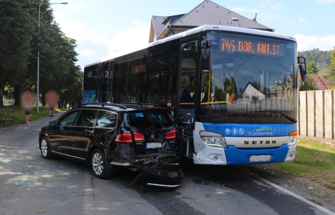 Včera krátce po jedné hodině odpoledne došlo v Přimdě k dopravní nehodě při které se osobní vůz Volkswagen Passat střetl s linkovým autobusem projíždějícím hlavní silnicí. Řidič autobusu se sice vozu snažil vyhnout, ale i přes stržení volantu vlevo se mu proti němu couvajícímu vozu nepodařilo vyhnout a došlo ke střetu. Ani řidiči, ani čtyřem cestujícím v autobusu se naštěstí nic nestalo, k jejich velkému překvapení ale v nabouraném osobním voze nikoho nenalezli.