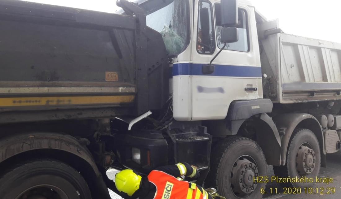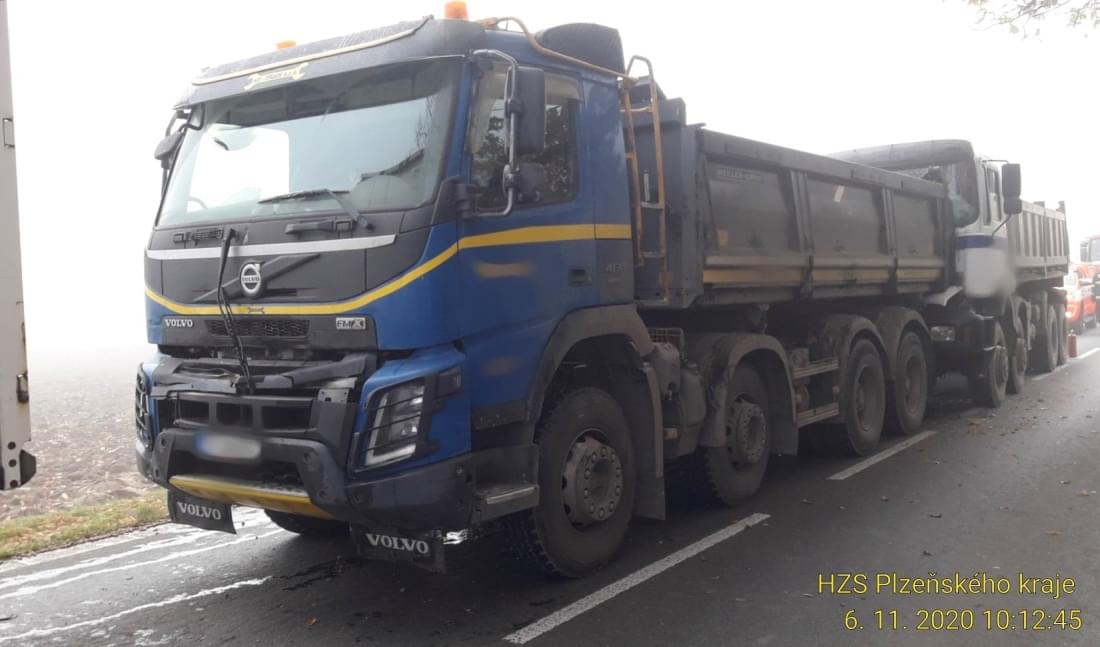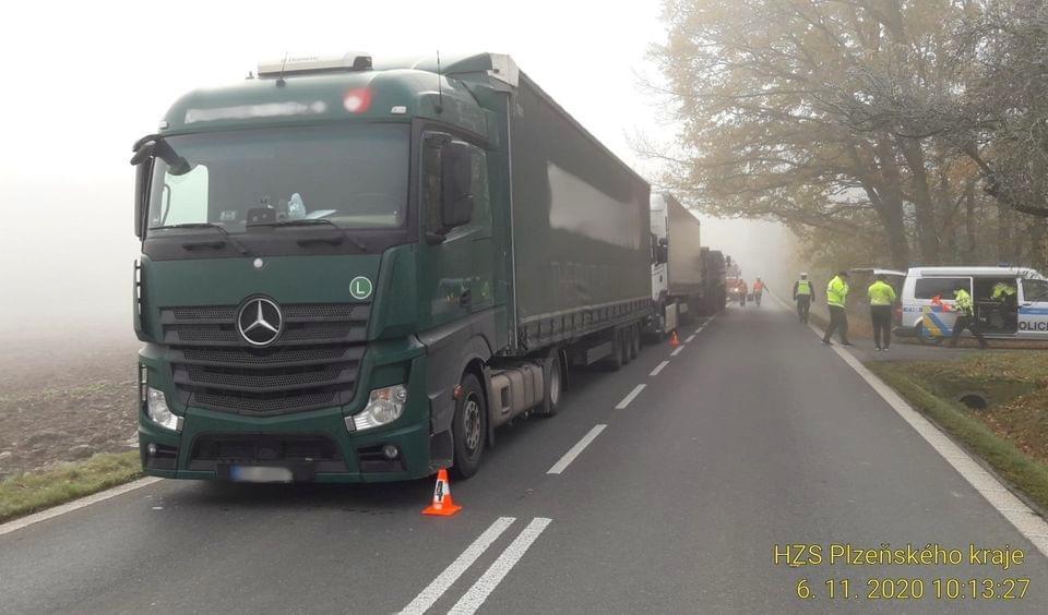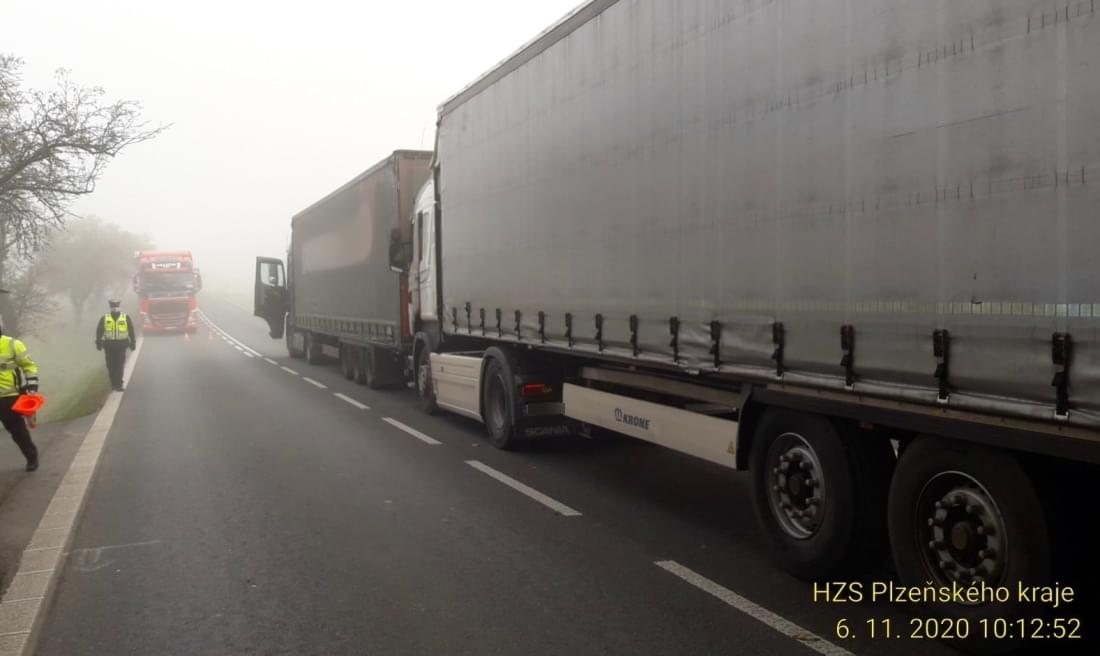 Ke střetu hned čtyř kamionů došlo dnes před desátou hodinou dopoledne u Březí v místě probíhajících prací na silnici.