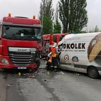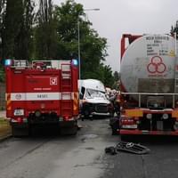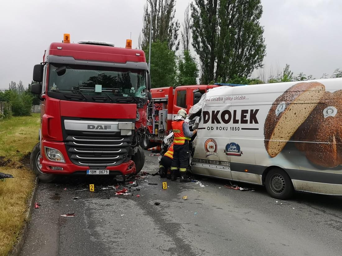 Dnes po sedmé hodině ráno došlo v Plzni v Jasmínové ulici ke střetu pekařské dodávky a kamionu. "Řidič vozidla Mercedes narozený v roce 2002 jel ulicí Jasmínová ve směru od Nepomucké ulice a z dosud nezjištěných příčin přejel do protisměru, kde se střetl s nákladním vozidlem značky DAF s návěsem, řízeným mužem narozeným v roce 1965," popsala tisková mluvčí policie. Řidič kamionu se ještě snažil zabránit střetu vyjetím z vozovky, vyhnout dodávce se ale nedokázal. Podle informací z místa vše nasvědčuje tomu, že mladík za volantem usnul.