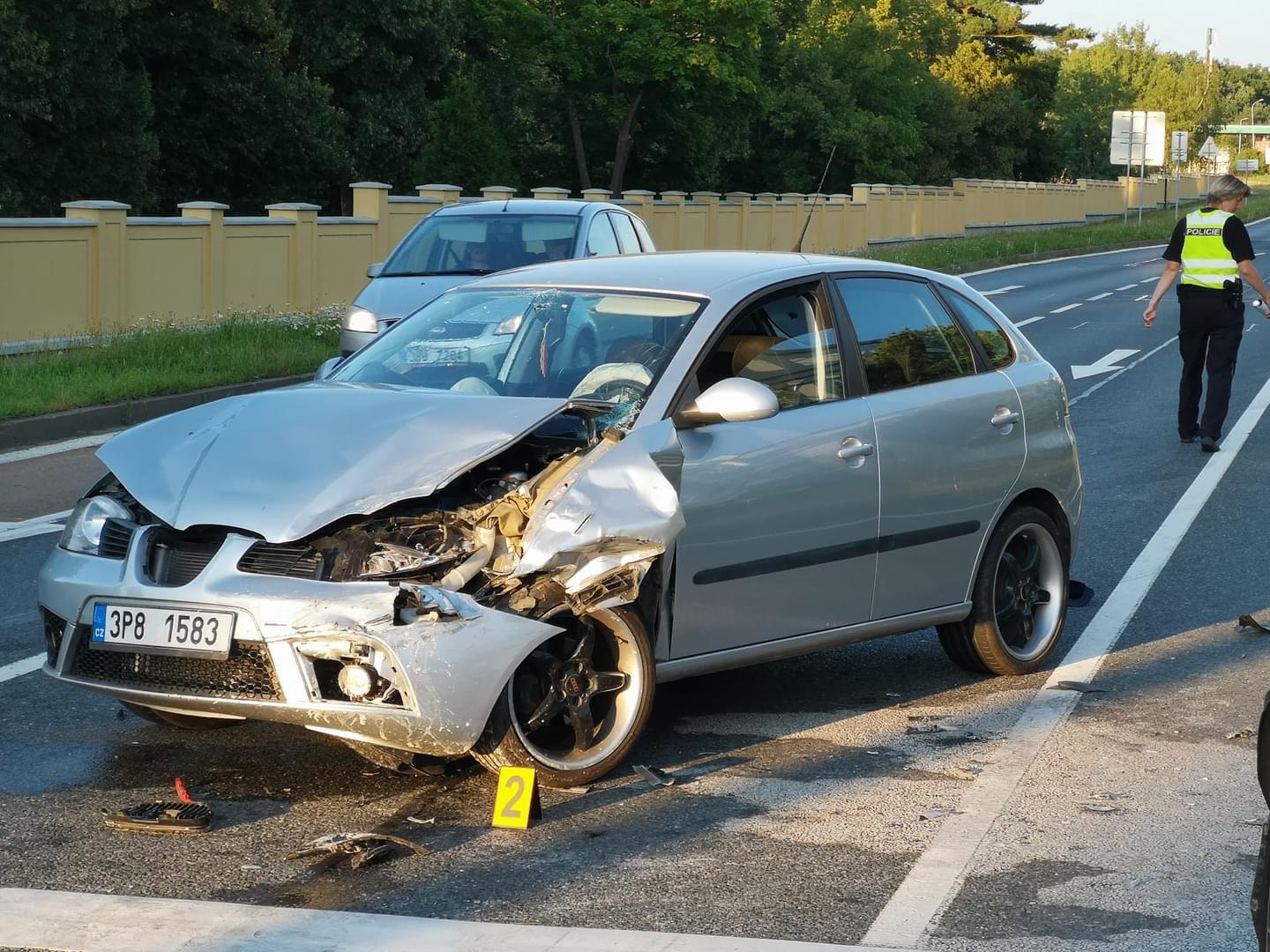 Náraz zdemoloval přední část Seatu a Mercedes odhodil několik metrů dopředu. Okamžitě po střetu vyběhl ze Seatu řidič i spolujezdec a oba začali utíkat směrem do centra. Jeden ze svědků nehody se pokoušel muže pronásledovat, ale ti běželi směrem k Hřbitovní ulici, kde vběhli do podchodu a svědek je ztratil z dohledu.