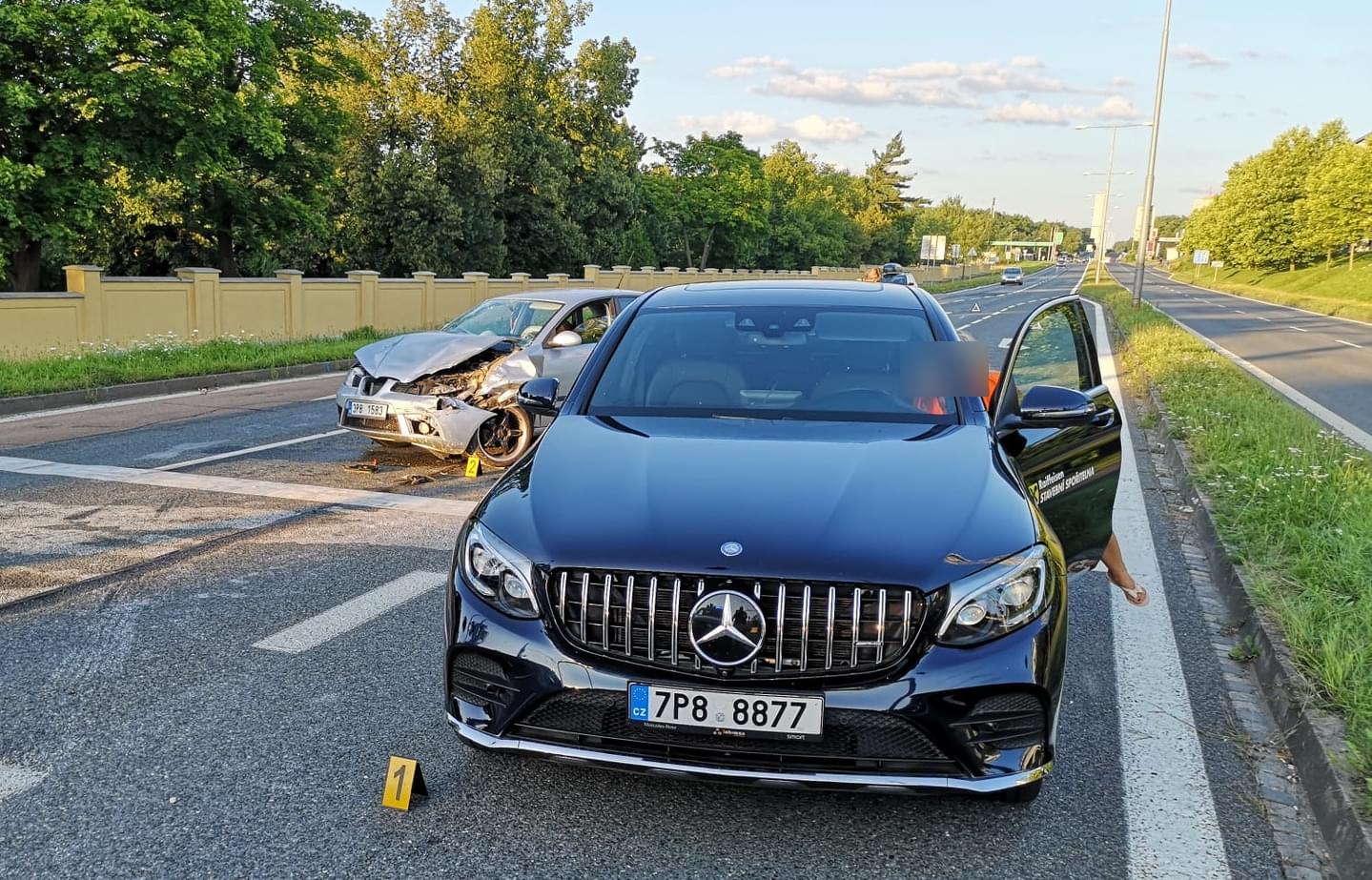 Dnes v podvečer došlo na Rokycanské třídě v Plzni ke střetu dvou osobních aut. Podle prvotních informací přímo z místa stála žena s vozem značky Mercedes na červené na semaforu u odbočky do OC Tesco a zezadu se přiřítil stříbrný vůz značky Seat Ibiza, který předtím podle svědků jel vysokou rychlostí, kličkoval mezi ostatními auty a do Mercedesu pak narazil.
