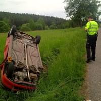 V zatáčce u Sedlce nedaleko Starého rybníka se střetlo vozidlo Mazda s protijedoucím Peugeotem, který po střetu vyletěl ze silnice, převrátil se a poté zůstal ležel na střeše.