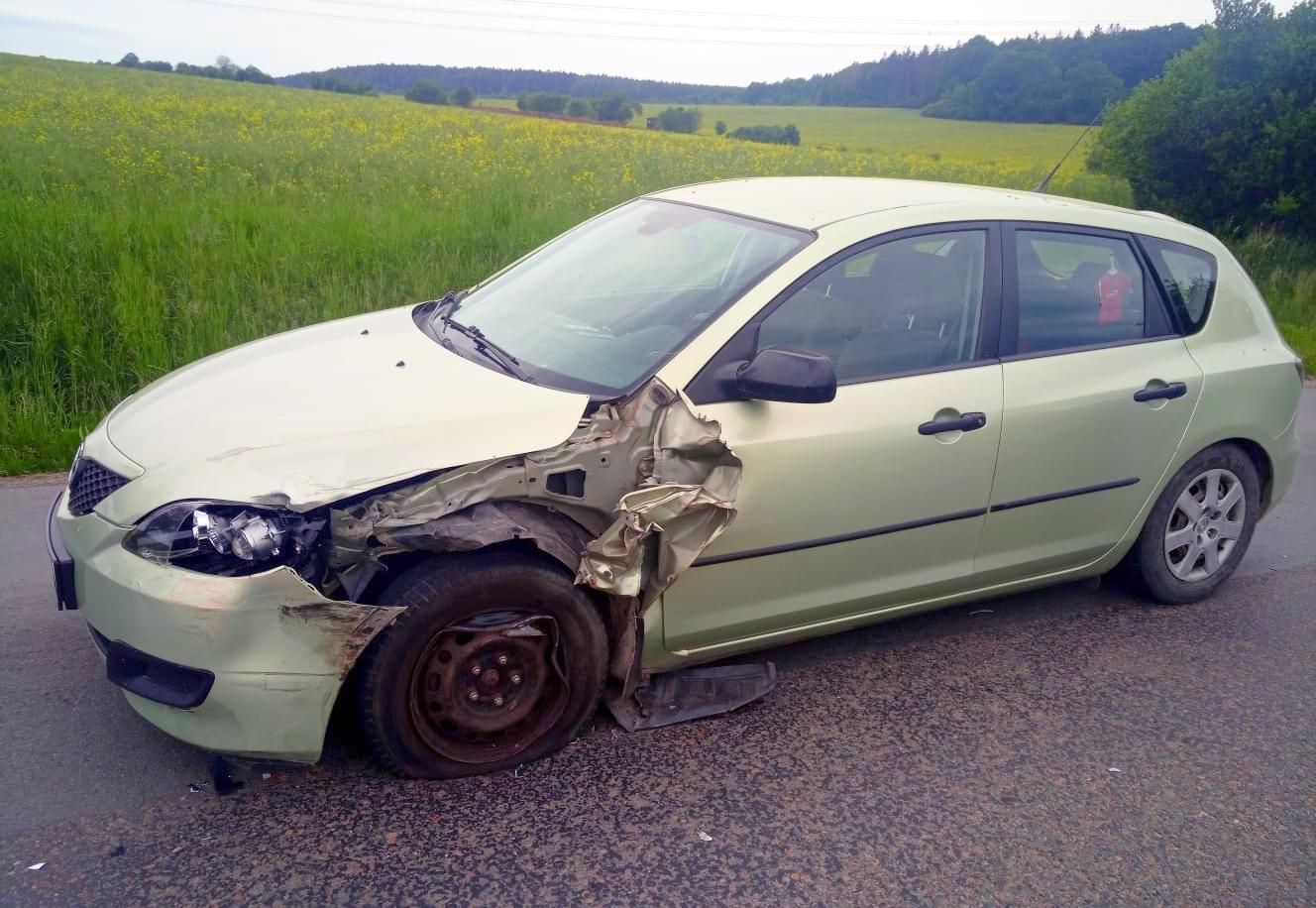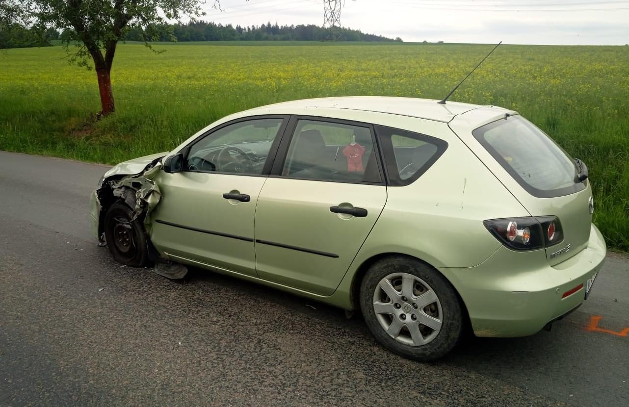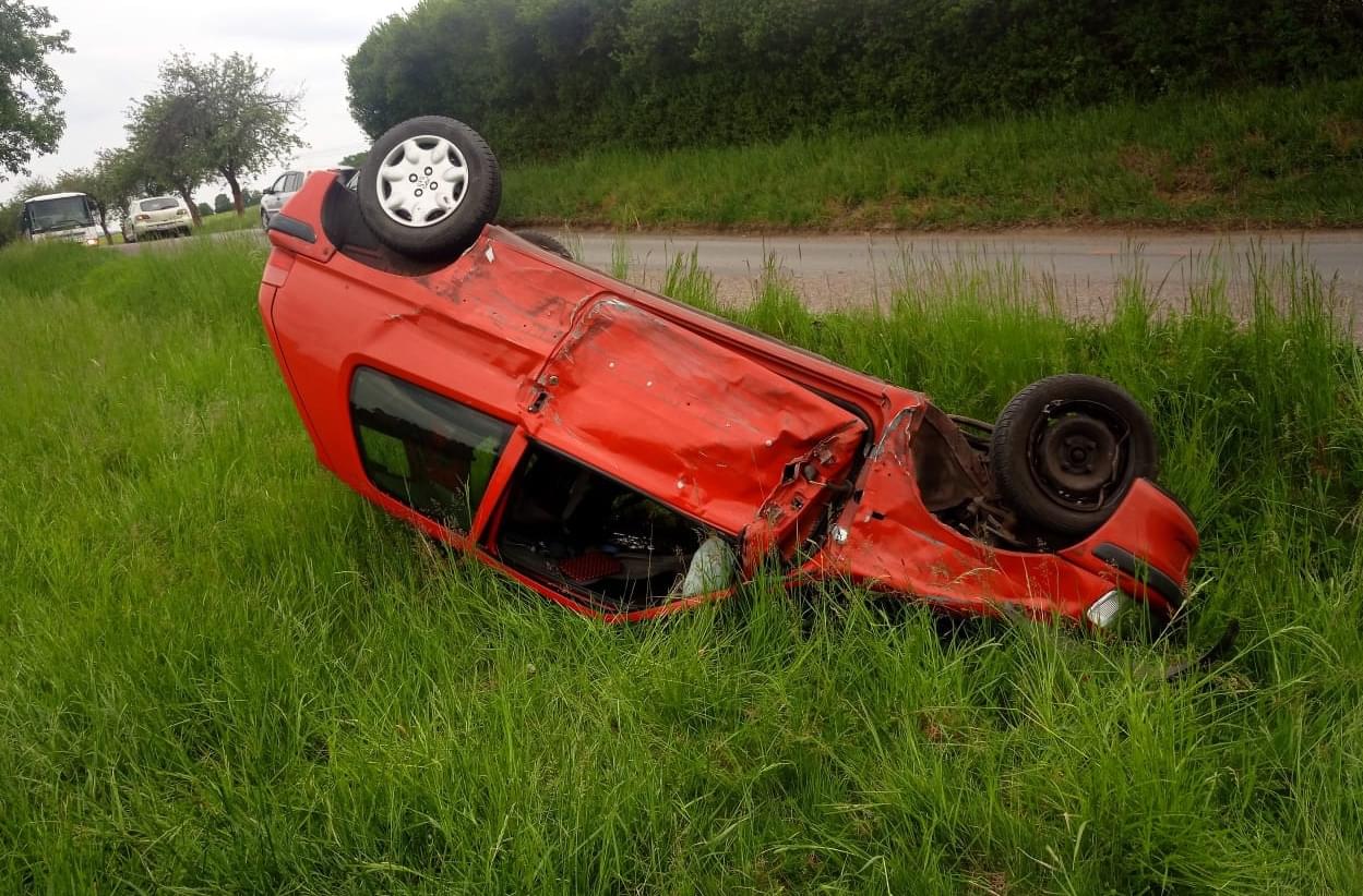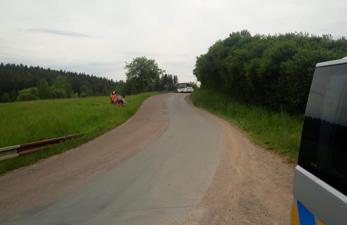 V zatáčce u Sedlce nedaleko Starého rybníka se střetlo vozidlo Mazda s protijedoucím Peugeotem, který po střetu vyletěl ze silnice, převrátil se a poté zůstal ležel na střeše.