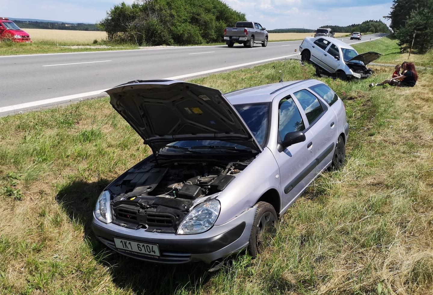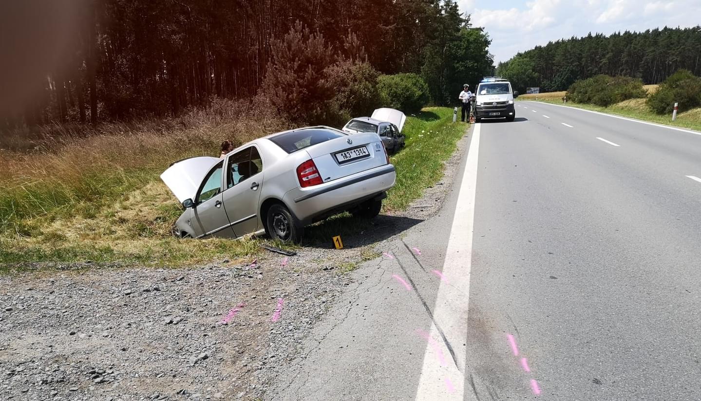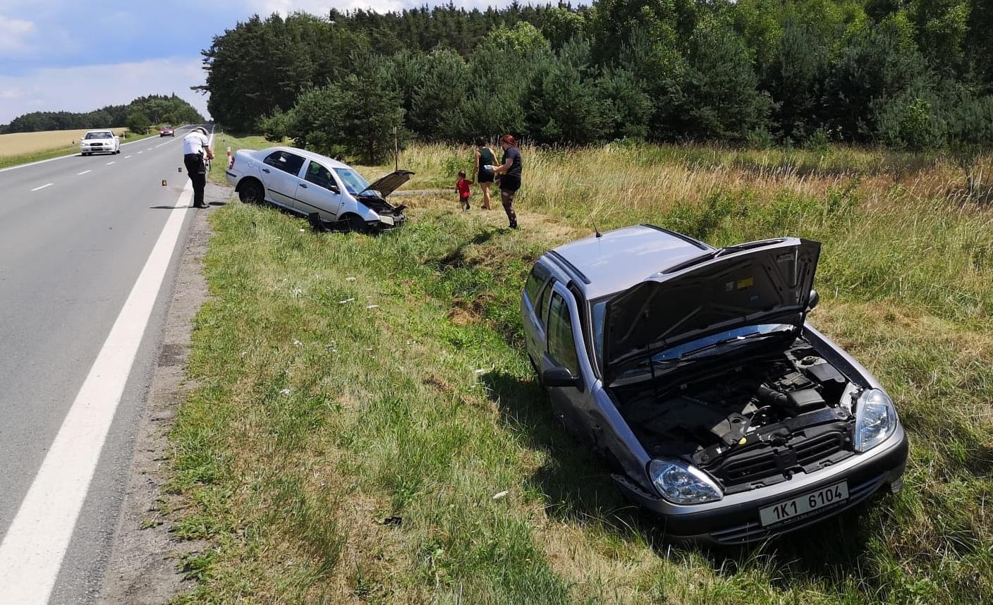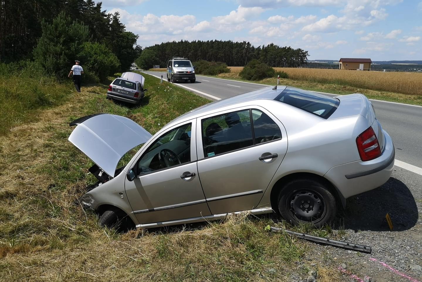 Dnes po jedné hodině odpoledne došlo na silnici z Plzně do Karlových Varů, mezi Chotíkovem a Novou Hospodou, k dopravní nehodě, během které se střetla dvě osobní vozidla. Oba vozy po střetu skončily mimo silnici.