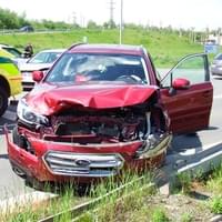 Řidička Subaru při nehodě utrpěla lehké zranění, její nezletilé dítě dle všeho zranění neutrpělo.