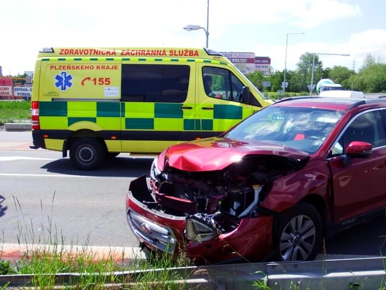 Dnes před polednem došlo v Plzni na křižovatce Chebské a Regensburské ulice ulici, v místě kde se napojuje obchvat Skvrňan, ke střetu dvou osobních vozidel. Z místa bylo hlášeno zranění zranění ženy a dítěte, takže na místo okamžitě vyjely všechny záchranné složky.