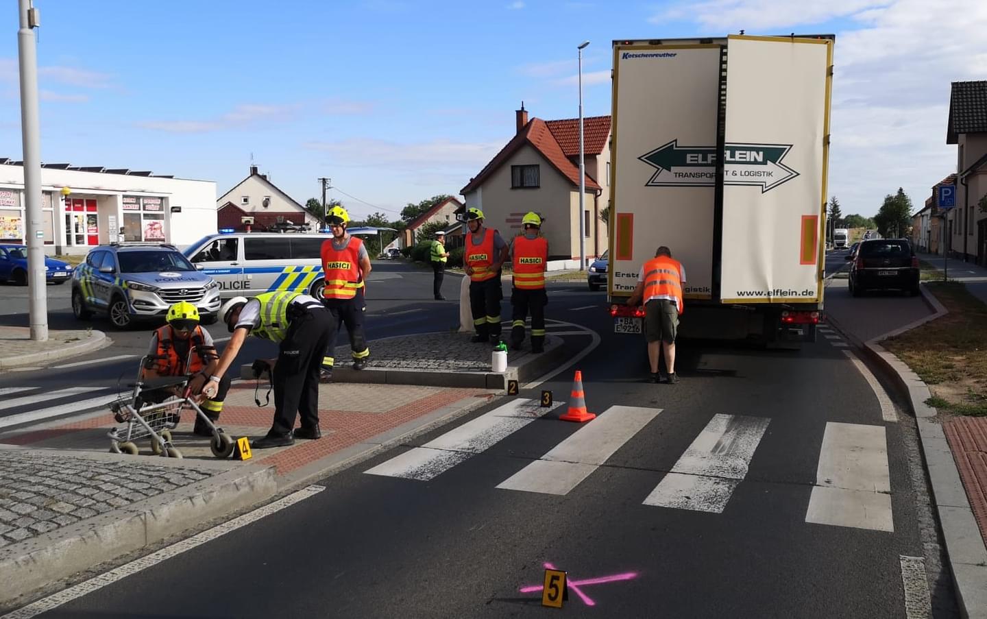 Dnes ráno po osmé hodině došlo na Plzeňské ulici v Chotěšově k velmi vážné dopravní nehodě. Podle informací přímo z místa přecházela asi devadesátiletá seniorka s chodítkem po přechodu pro chodce od prodejny Coop, když jí zřejmě přehlédl řidič kamionu značky Mercedes jedoucí směrem na Plzeň.