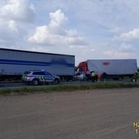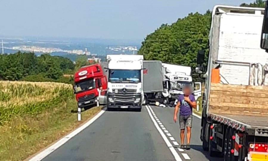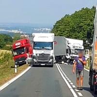 "Řidič nákladního vozu narozený v roce 1989 nepřizpůsobil rychlost jízdy a narazil do před ním stojícího nákladního vozu řízeného mužem narozeným v roce 1953, které následně narazilo do před ním stojícího osobního vozu řízeného ženou narozenou v roce 2001, a to poté narazilo do před ním stojícího nákladního vozu řízeného mužem narozeným v roce 1970. Zranění utrpěla spolujezdkyně z osobního vozu narozená v roce 1945," popsala okolnosti řetězové srážky mluvčí policie s tím, že požití alkoholu bylo u všech řidičů vyloučeno dechovými zkouškami a policisté se nehodou dále zabývají.Foto svědek a HZS