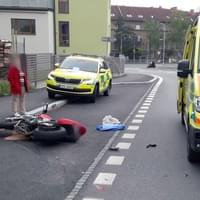 Dnes před jednou hodinou odpoledne došlo v ulici Maxima Gorkého v Klatovech k dopravní nehodě, při které se střetl motocykl Honda s osobním vozem BMW.
