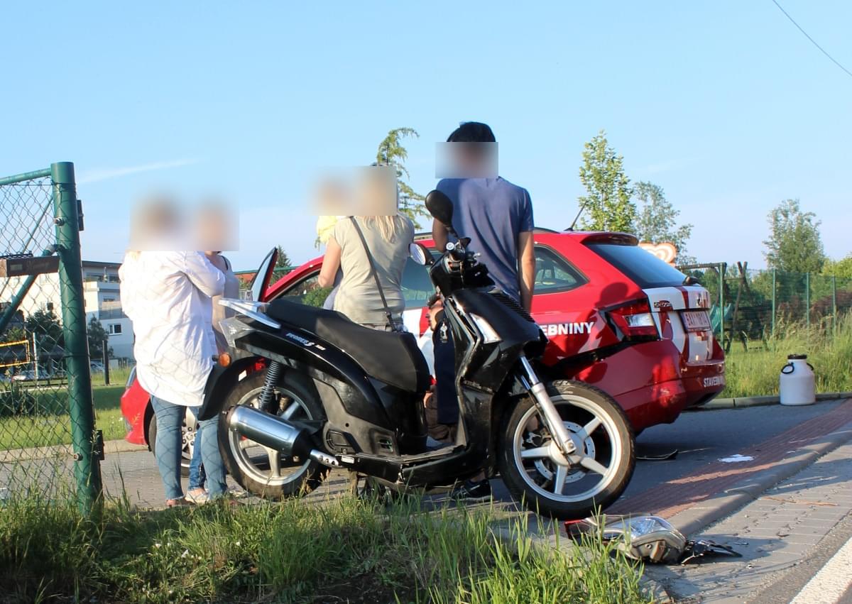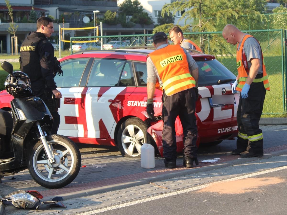 Dnes před sedmou hodinou večer došlo na křižovatce ulic Červenohrádecká a K Fořtovně v Plzni na Doubravce - Červeném Hrádku ke střetu skútru a osobního vozu.