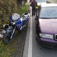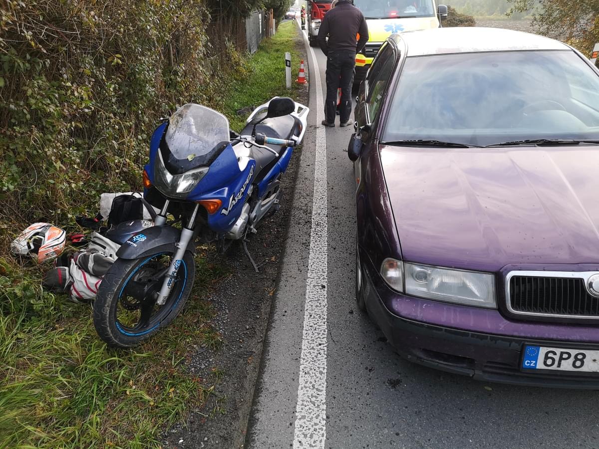 Dnes před osmou hodinou ráno došlo na silnici mezi Plzní a Radčicemi k dopravní nehodě, při které motocykl narazil do osobního vozu.