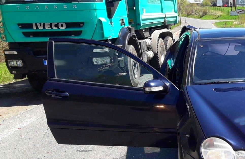 Dnes před jednou hodinou odpoledne došlo v Oldřichovské ulici v Tachově ke střetu osobního vozu Mercedes a nákladního vozu Iveco.