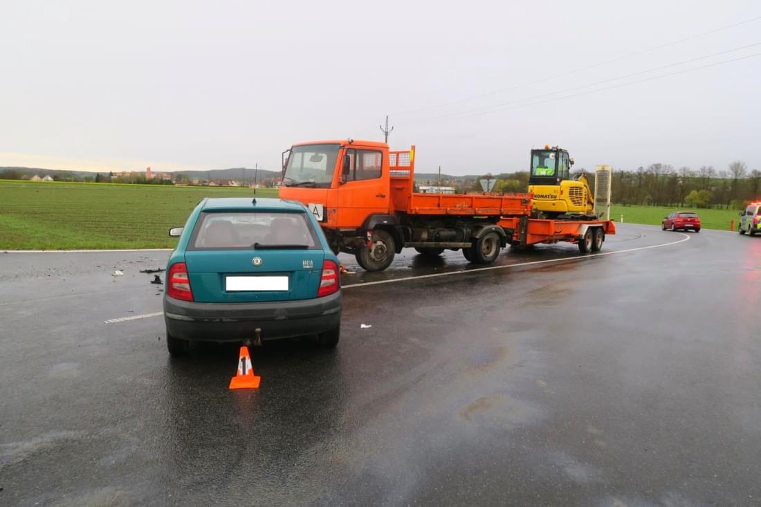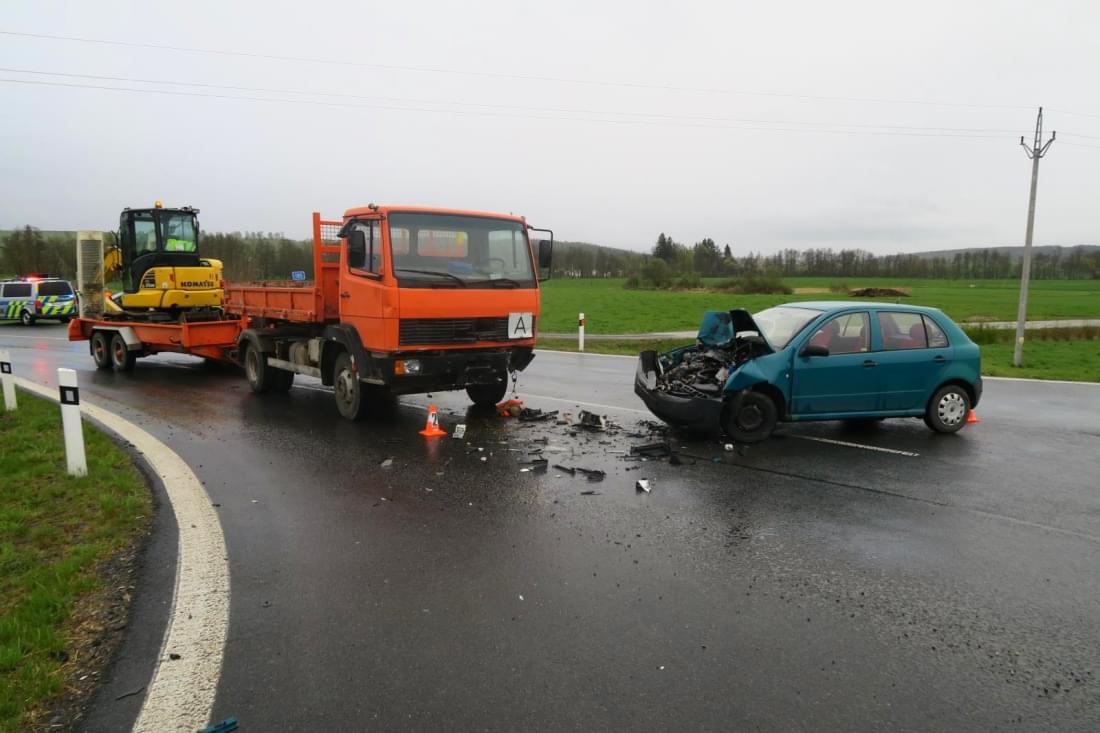 "Devatenáctiletá řidička osobního automobilu Škoda Fabia nepřizpůsobila rychlost jízdy, při průjezdu křižovatkou, kdy odbočovala ze silnice I. třídy č. 26 na silnici II. třídy č. 185 na obec Staňkov dostala na mokrém povrchu komunikace smyk a přejela do protisměrného jízdního pruhu, kde narazila do protijedoucí soupravy nákladního automobilu Mercedes s přívěsem Obermaier jednadvacetiletého řidiče přijíždějícího do křižovatky od obce Staňkov," popsala tisková mluvčí policie.