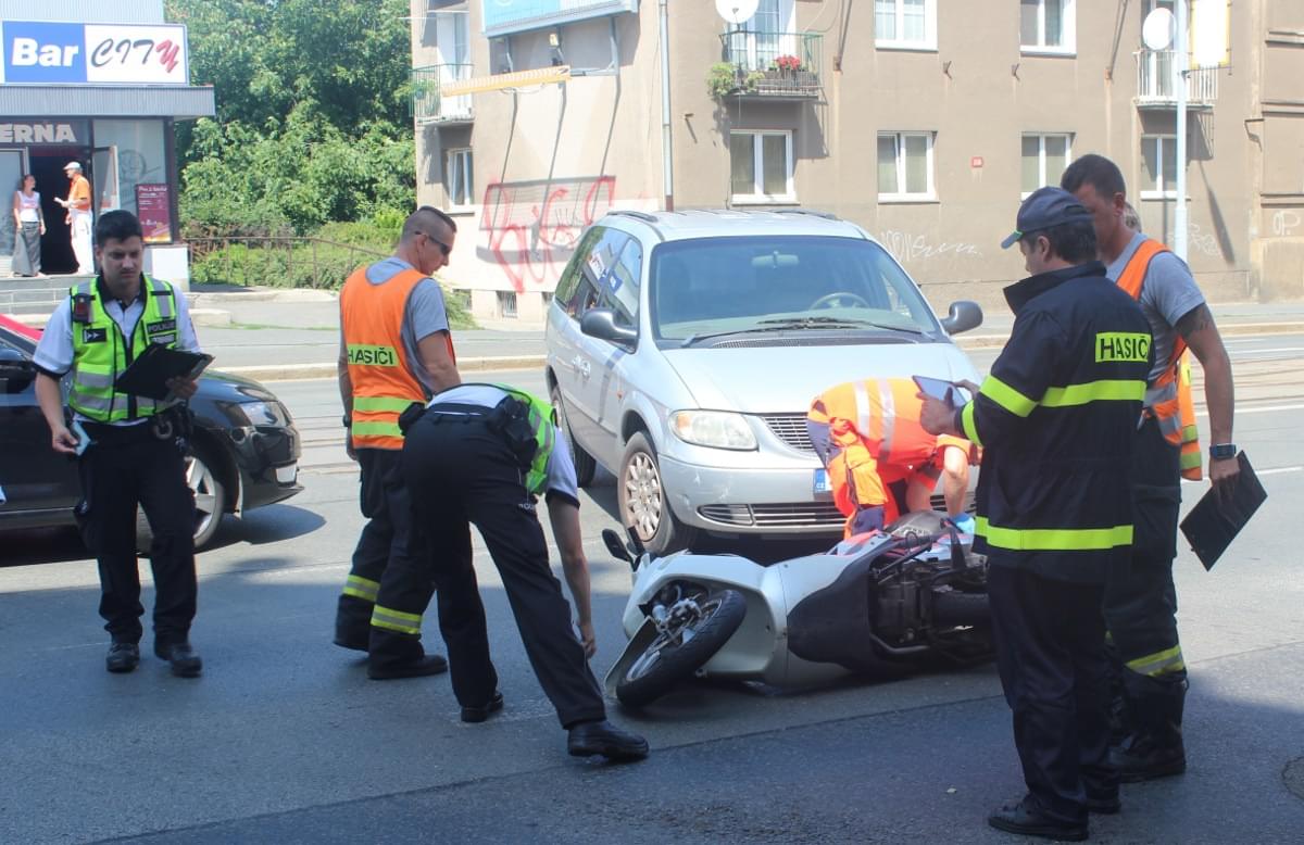 Dnes kolem půl jedné odpoledne došlo k dopravní nehodě na Klatovské třídě v Plzni, kde se střetl skútr s automobilem.