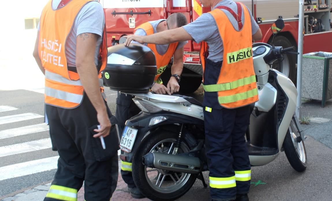 Hasiči na místě provedli protipožární opatření, na skútru odpojili baterii skútru a zastavili drobný únik paliva.