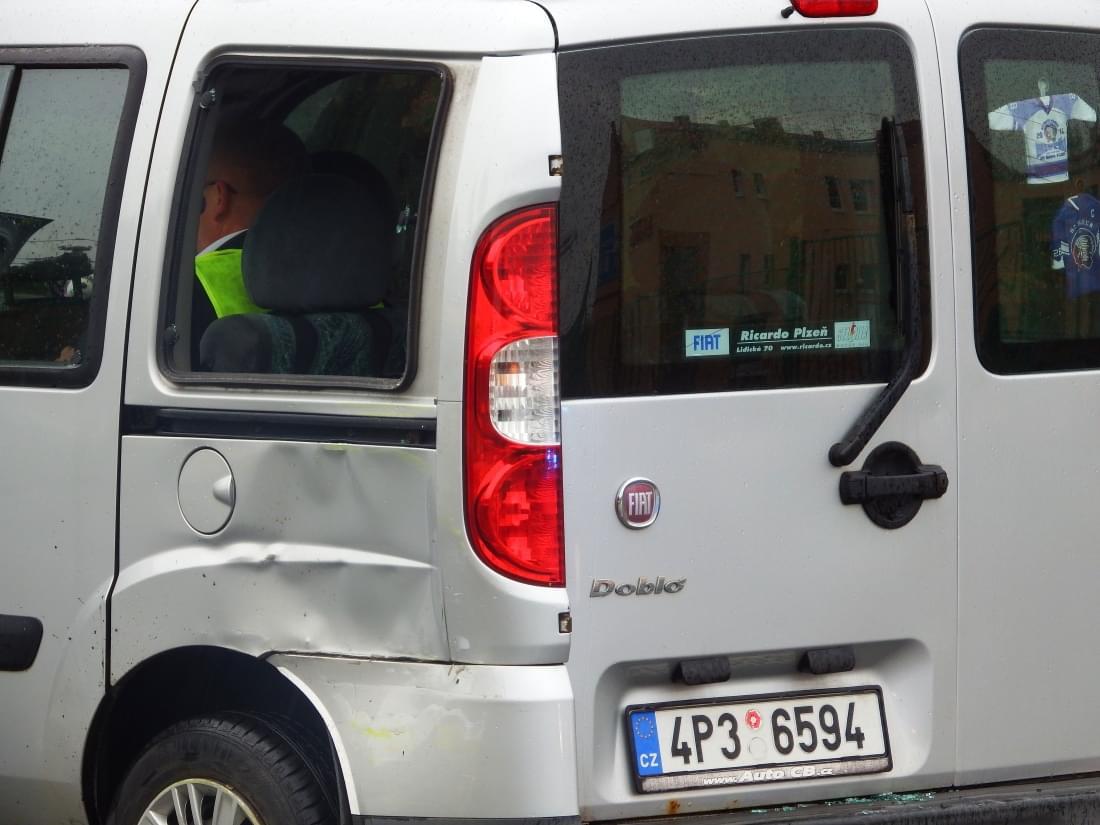 Dnes ve čtvrt na dvanáct dopoledne došlo na křižovatce Karlovarské a Lidické ulice v Plzni ke střetu osobního vozu Fiat Doblo s tramvají linky číslo 1.