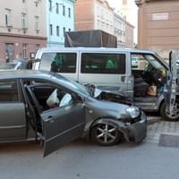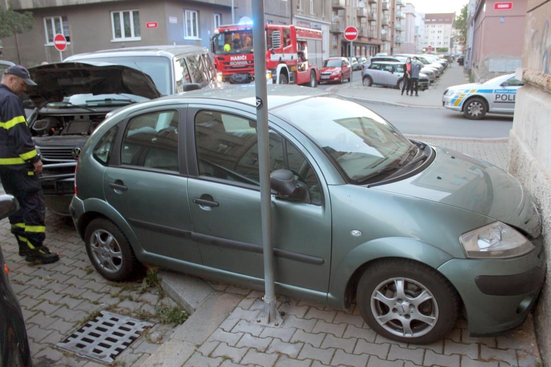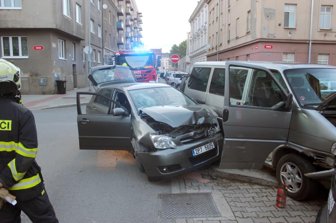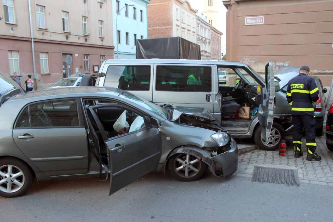 Podle informací z místa nedal řidič vozu Volkswagen Caravelle jedoucí Hřímalého ulicí přednost zprava ulicí Thámova přijíždějící řidičce vozu Toyota Corolla a došlo ke střetu, při kterém vozy narazily do na chodníku zaparkovaného Citroenu C3, který natlačily na zeď domu a dopravní značku.