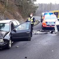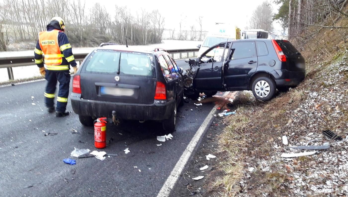 Dnes po sedmé hodině ráno došlo v táhlé zatáčce mezi Jeníkovicemi a Horšovským Týnem, u odbočky na Lazce, k dopravní nehodě tří osobních vozidel, konkrétně dvou vozů Škoda a jednoho vozu Ford.