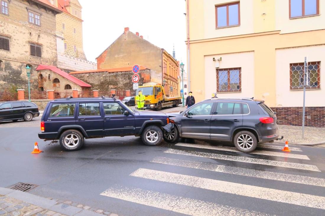 "Třicetiletý řidič osobního automobilu tovární značky Jeep Cherokee jedoucí z ulice Dr. E. Beneše do ulice Jana Littrowa nepřizpůsobil rychlost jízdy, při průjezdu pravotočivé zatáčky dostal na mokrém povrchu komunikace smyk a přejel do protisměrného jízdního pruhu, kde narazil do protijedoucího vozidla tovární značky Volkswagen Tiguan řidičky projíždějící křižovatkou ve směru jízdy z ulice Jana Littrowa do ulice Dr. E. Beneše," popsala tisková mluvčí policie.