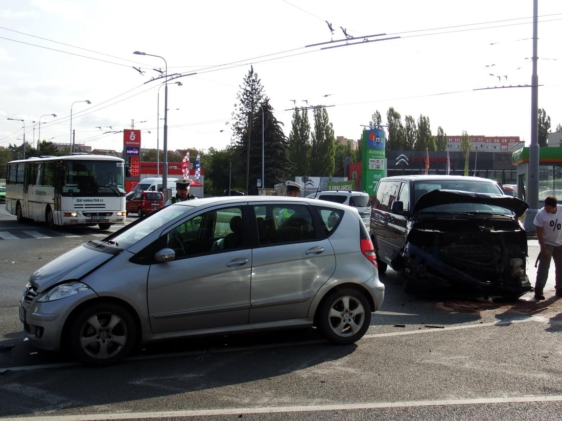 Ke střetu vozů Mercedes a Volkswagen Multivan došlo dnes po deváté hodině ráno na křižovatce ulic Těšínská a Jateční v Plzni. Na místo vyrážely všechny záchranné složky.