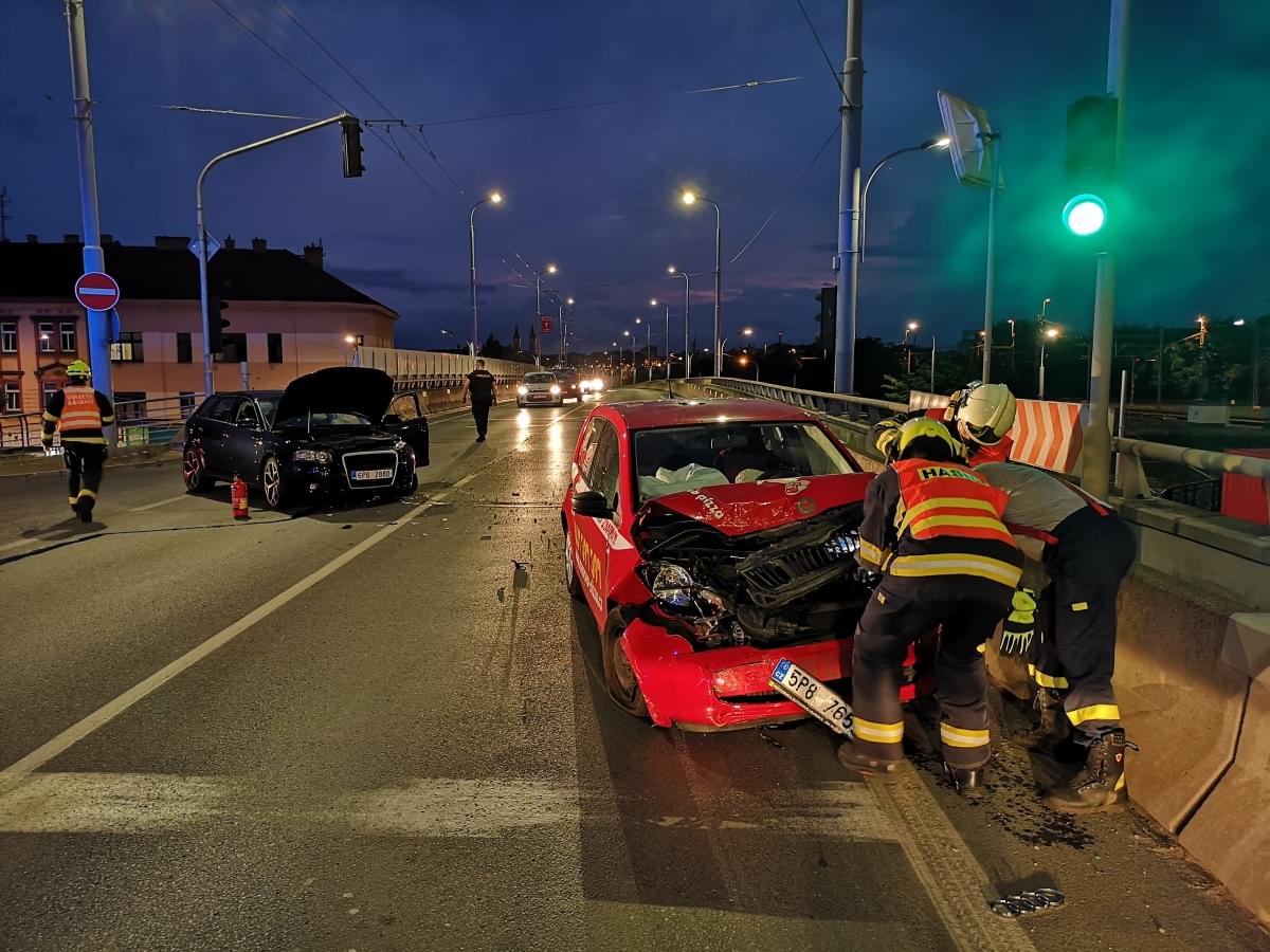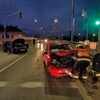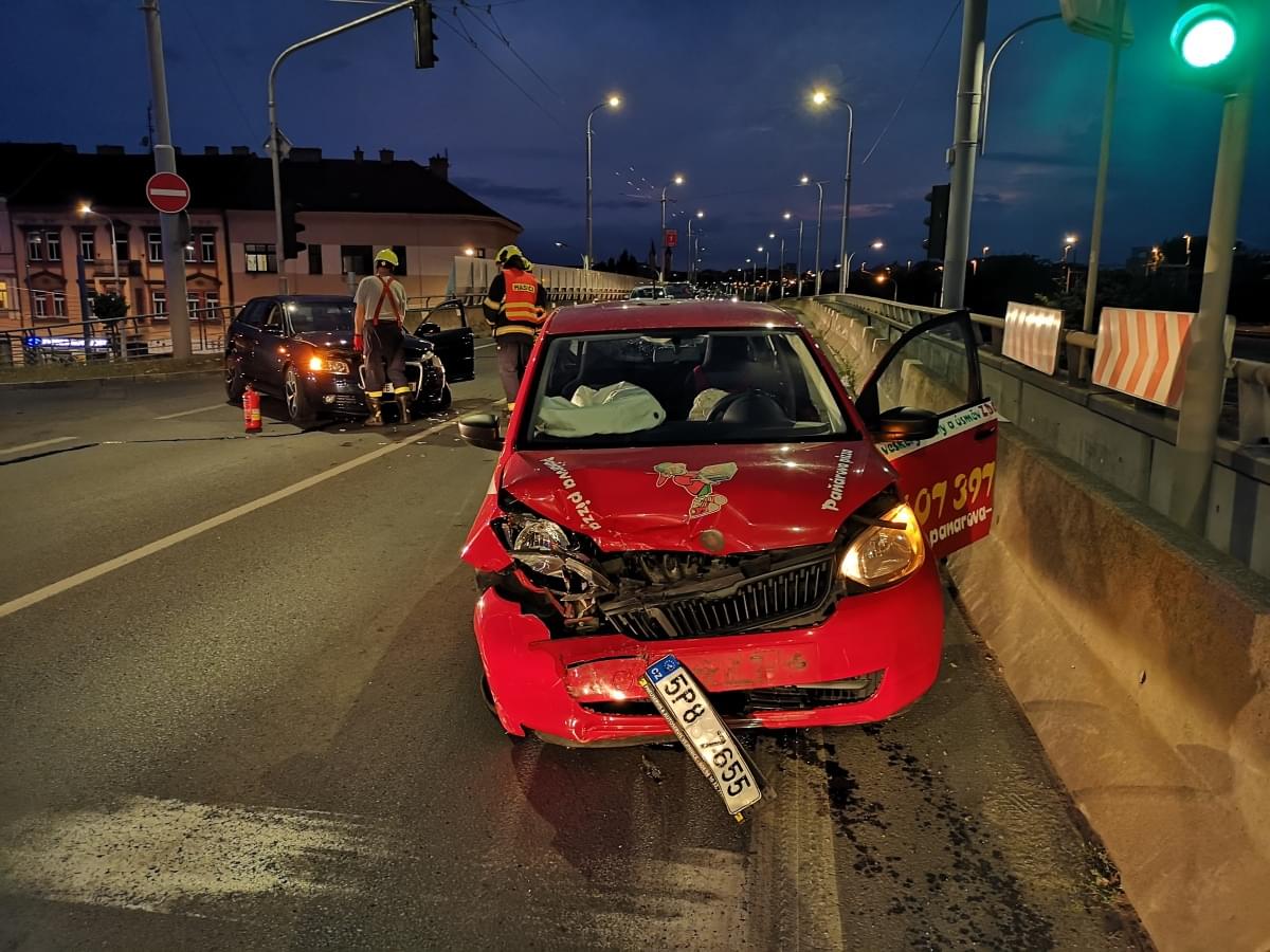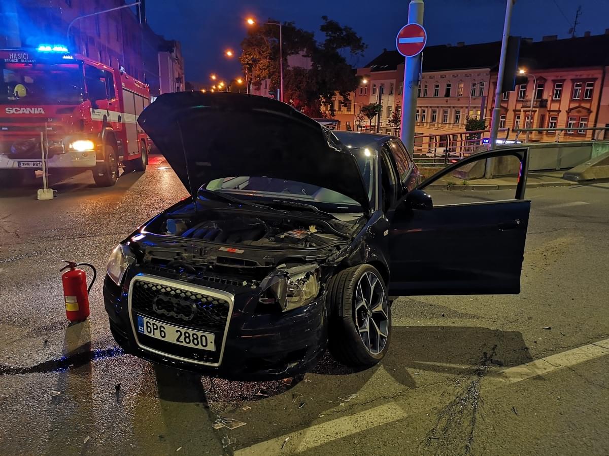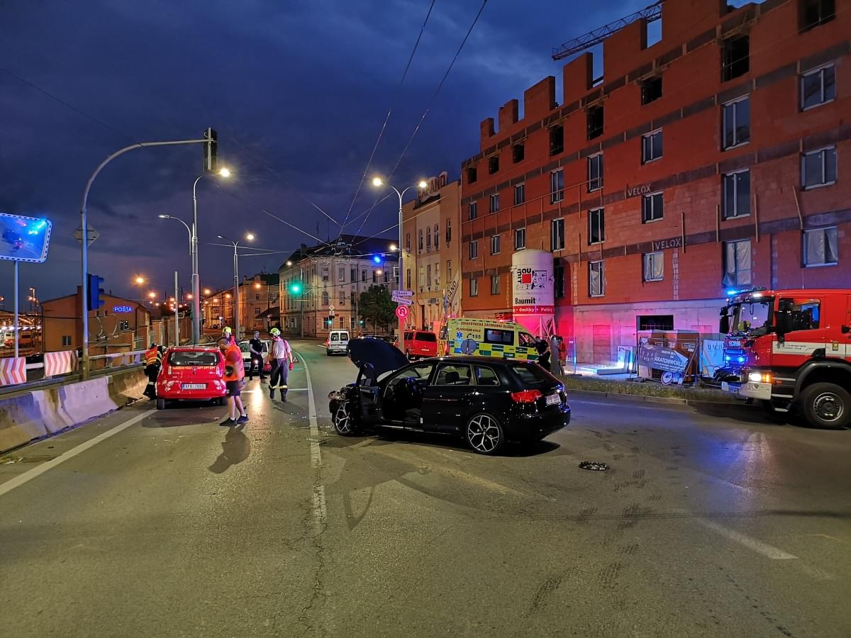 V noci na dnešek těsně před desátou hodinou došlo na křižovatce ulic U Trati a Mikulášská v Plzni na výjezdu z mostu Milénia k dopravní nehodě, při které se střetly dva osobní vozy.