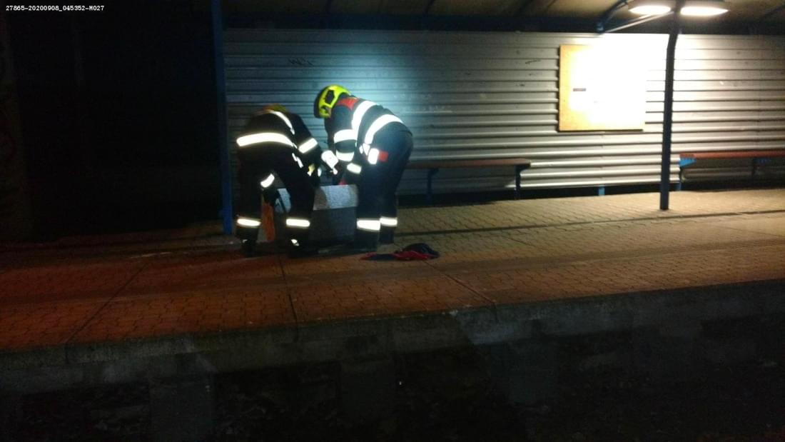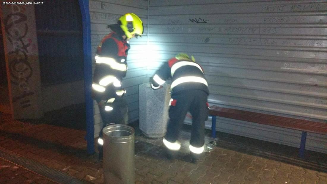 "Jednotka provedla odstranění betonového odpadkového koše z průjezdného profilu tratě a vrátila jej zpět na perón železniční zastávky," uvedli drážní hasiči.
