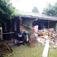 „Došlo k destrukci jedné stěny a částečnému zborcení střechy. Muž se dostal ven sám, vyprošťovat jsme jej nemuseli,“ uvedl velící důstojník hasičů.