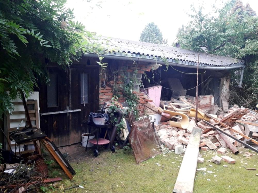 „Došlo k destrukci jedné stěny a částečnému zborcení střechy. Muž se dostal ven sám, vyprošťovat jsme jej nemuseli,“ uvedl velící důstojník hasičů.