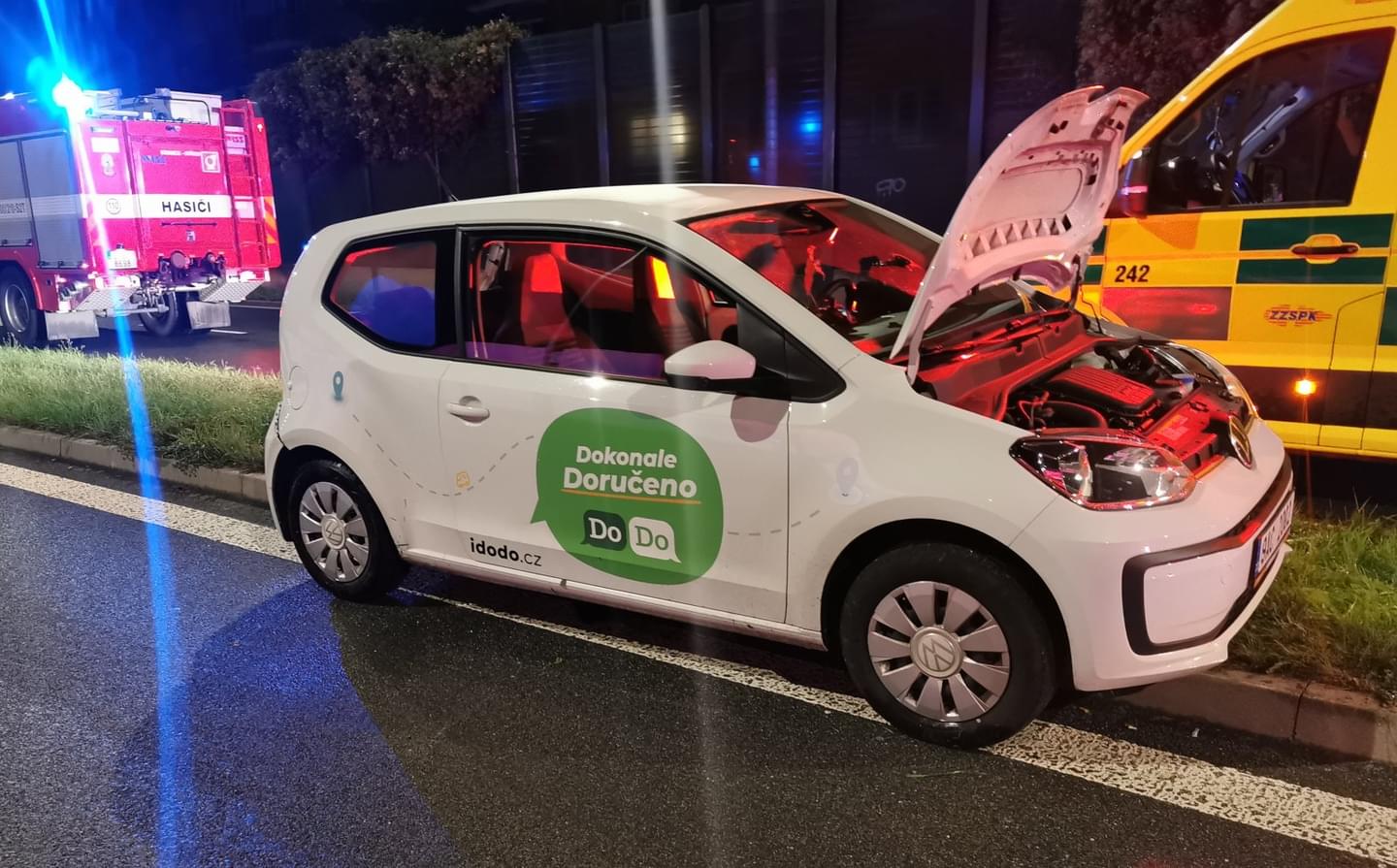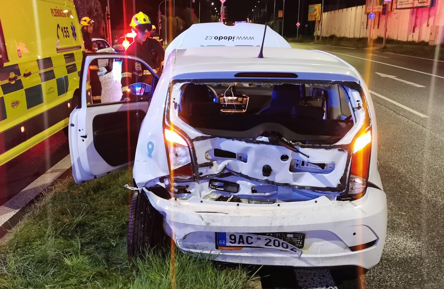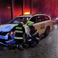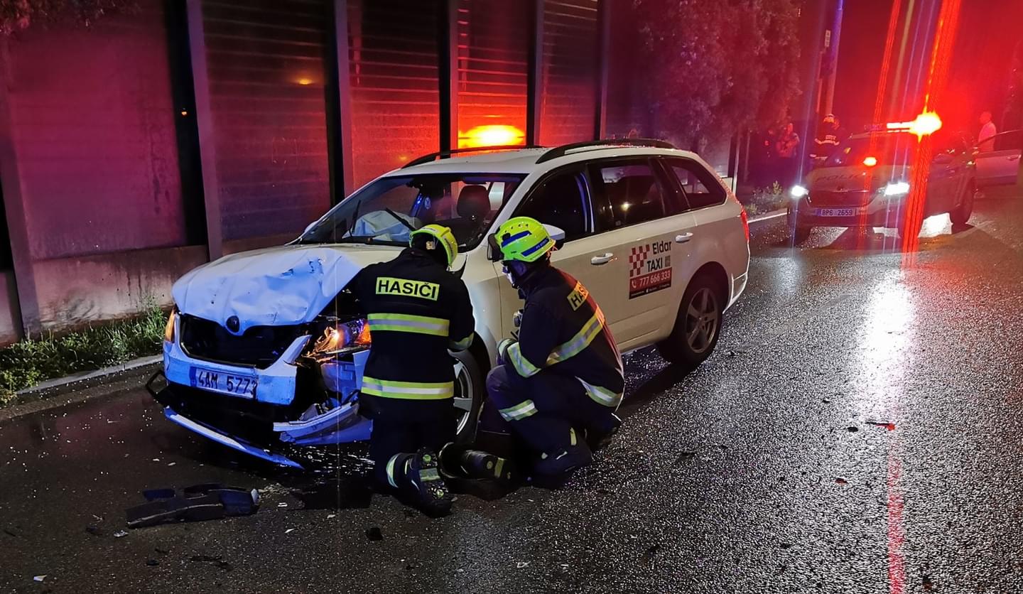 V noci na dnešek chvilku po půlnoci došlo v Plzni v Sukově ulici ke střetu vozu taxi s vozidlem rozvážkové služby. Vůz taxi značky Škoda řízený ženou zezadu narazil do vozu zásilkové služby značky VW, který taktéž řídila žena. Náraz byl tak silný, že Volkswagen přeletěl středový dělicí pruh, v protisměru se otočil o 180 stupňů a znovu najel na dělicí pruh.