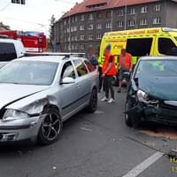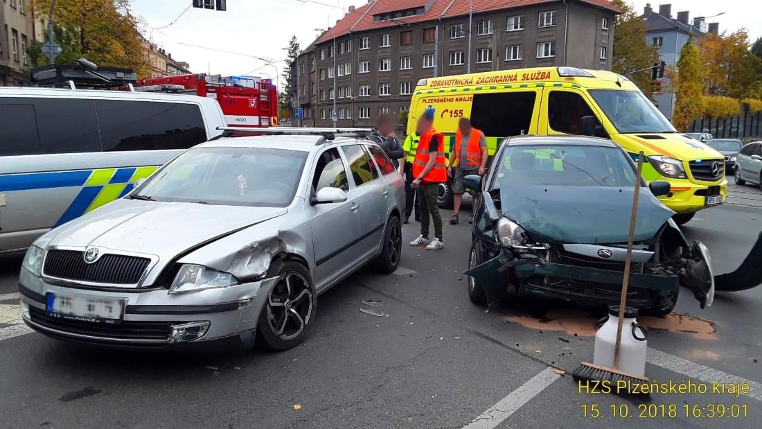 Včera po čtvrté hodině odpoledne došlo na náměstí Míru v Plzni ke střetu dvou osobních vozů.