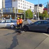 Dnes před čtvrtou hodinou odpoledne došlo na křižovatce ulic U Prazdroje, Sirková, Tyršova a Pražská k dopravní nehodě, při které se střetly dva osobní vozy. Podle informací z místa vjel mladý řidič s Mercedesem do křižovatky ze Sirkové ulice na červenou a narazil do něj řidič s vozem Tesla Model S jedoucí z Tyršovy ulice na zelený signál. Řidič v Mercedesu cestoval sám, v Tesle cestoval řidič se spolujezdkyní.