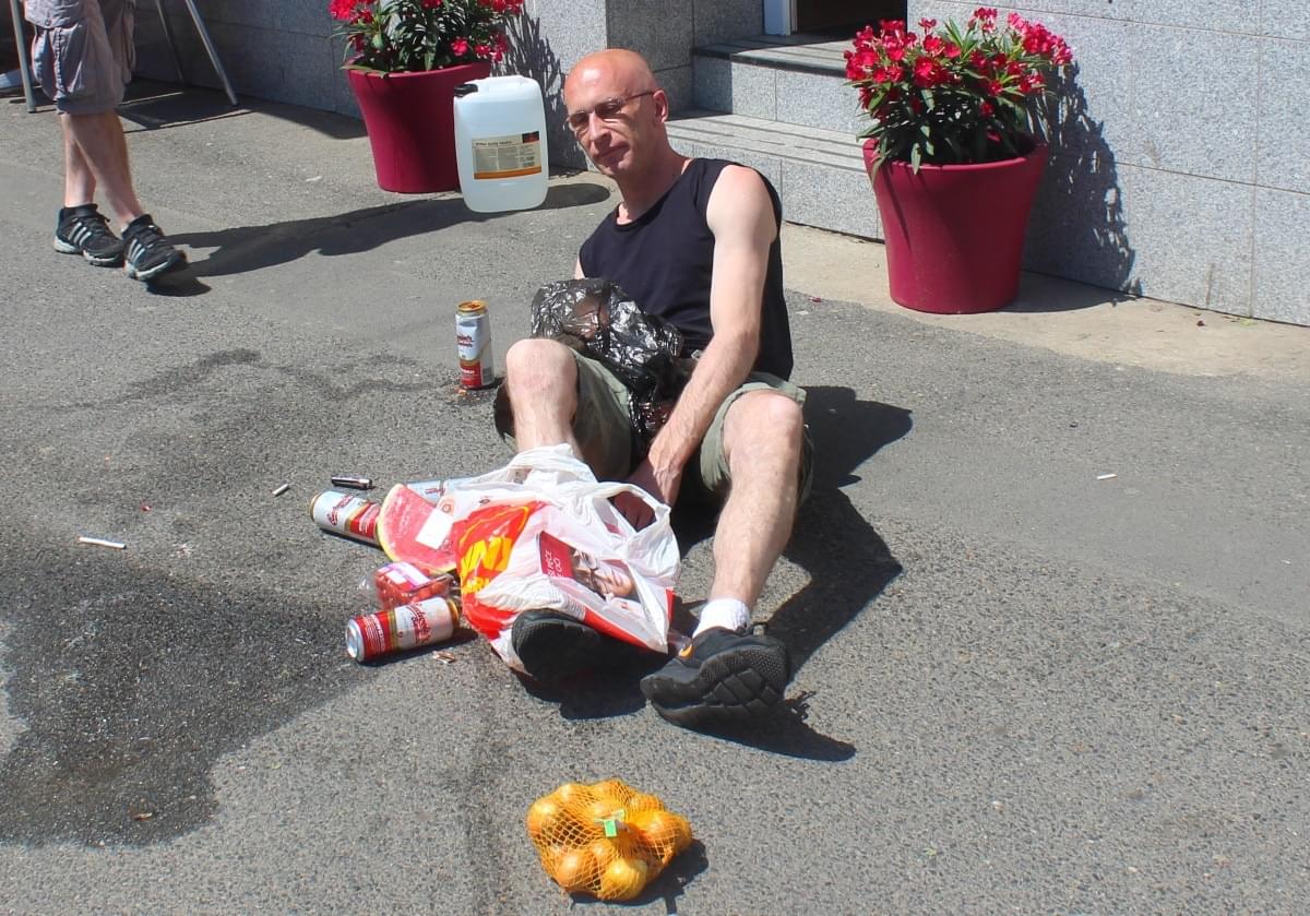 Majitel se mu pokusil domluvit, že odhání jeho zákazníky, ale Polák již nebyl schopen ani vnímat okolí ani vstát a pokusil se si obléci igelitovou tašku.