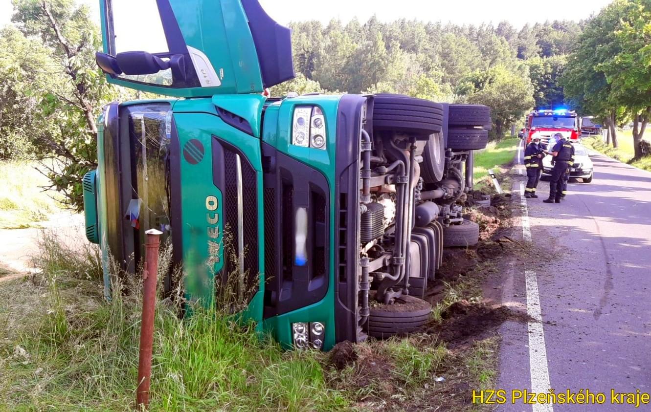 Včera před pátou hodinou odpoledne došlo mezi Sušicí a Hrádkem k havárii nákladního vozu Iveco s přívěsem. "Padesátiletý muž z obce na Domažlicku v mírném klesání vjel na krajnici a sjel do pravého silničního příkopu, kudy pokračoval v jízdě a následně došlo k převrácení vozidla na pravý bok a nárazu do ovocného stromu," popsala tisková mluvčí police.