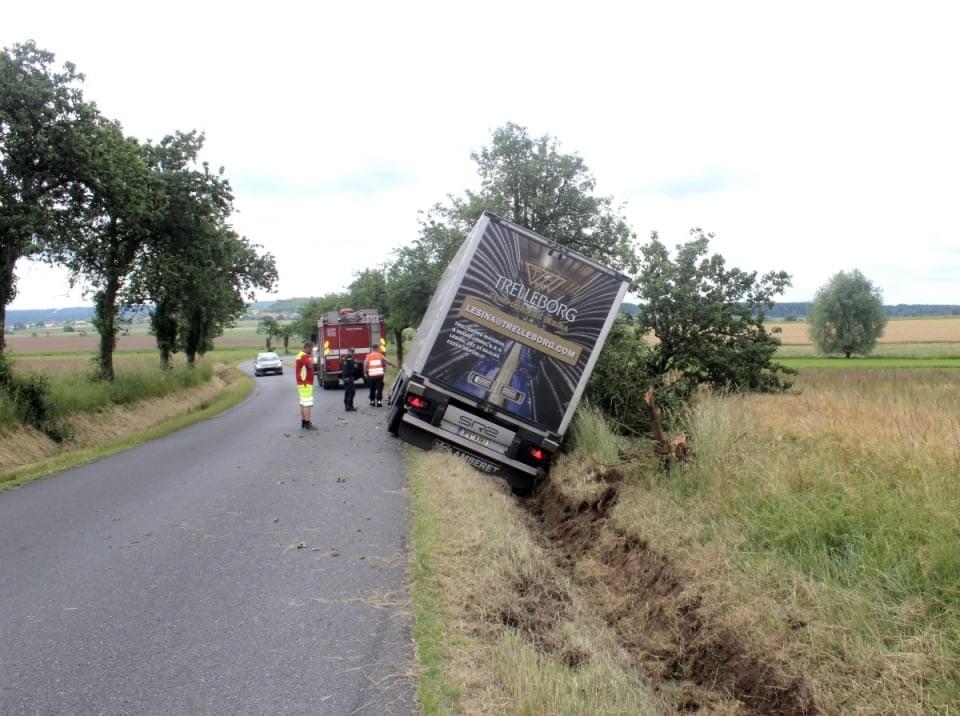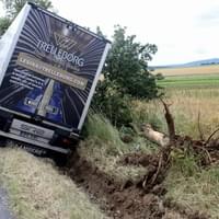Dnes krátce po jedenácté hodině havaroval kamion, jedoucí odsjezdu Ejpovice z D5 směrem na Tymákov. Vyjel mimo silnici, pokračoval příkopem a kácel zde rostoucí stromy jeden za druhým, celkem tak vymýtil čtyři stromy.