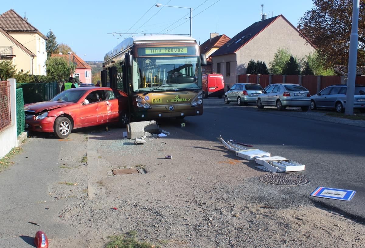 Na zastávce Na Spojce ve směru do centra zastavil trolejbus, řidička otevřela dveře a několik cestujících do vozu nastoupilo. V ten okamžik se v tomtéž směru přiřítilo vozidlo Mercedes, jehož řidič naprosto nepochopitelně škrtl o betonový zátaras, vjel zezadu na zastávku a během toho narazil do zadní části trolejbusu. Poté pokračoval kolem trolejbusu, smetl zastávku, narazil do plotu a zadní část mercedesu skončila v předních dveřích trolejbusu.