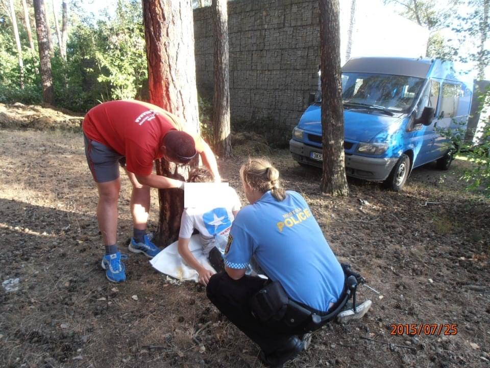 Hlídka strážníků Městské policie Plzeň, vykonávající dohled nad veřejným pořádkem na akci u Boleveckého rybníka, uviděla muže zochranky, jak podpírá mokrého chlapce, který nemůže ani sám jít. Strážníci samozřejmě okamžitě přispěchali na pomoc a společně chlapce z kterého táhl alkohol, doprovodili do stínu a poskytli první pomoc.