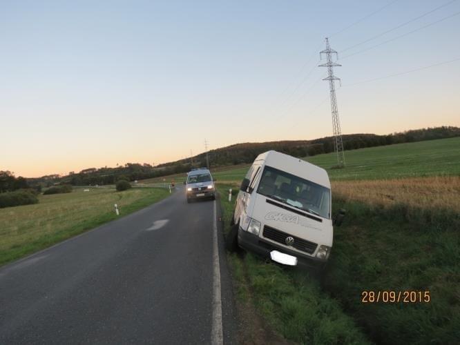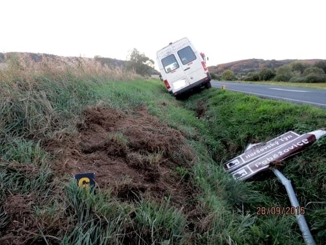 Včera odpoledne v 16:50 hodin došlo mezi obcemi Štítary a Svržno k dopravní nehodě. Pětapadesátiletý řidič dodávkového nákladního vozidla tovární značky Volkswagen, jedoucí od obce Štítary na obec Svržno, nepřizpůsobil rychlost a po projetí mírné přehledné pravotočivé zatáčky vjel do levé poloviny komunikace a dále za levou krajnici do levého silničního příkopu. Zde narazil do sloupku dopravní značky.