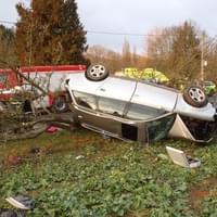 Následně Nissan zezadu narazil do vozidla Audi, které bylo odraženo mimo vozovku, kde narazilo postupně do dvou stromů a zůstalo převrácené na střeše. Vozidlo Nissan bylo odraženo vpravo mimo komunikaci, kde narazilo do oplocení domu a zůstalo převrácené na pravé straně na zahradě domu.
