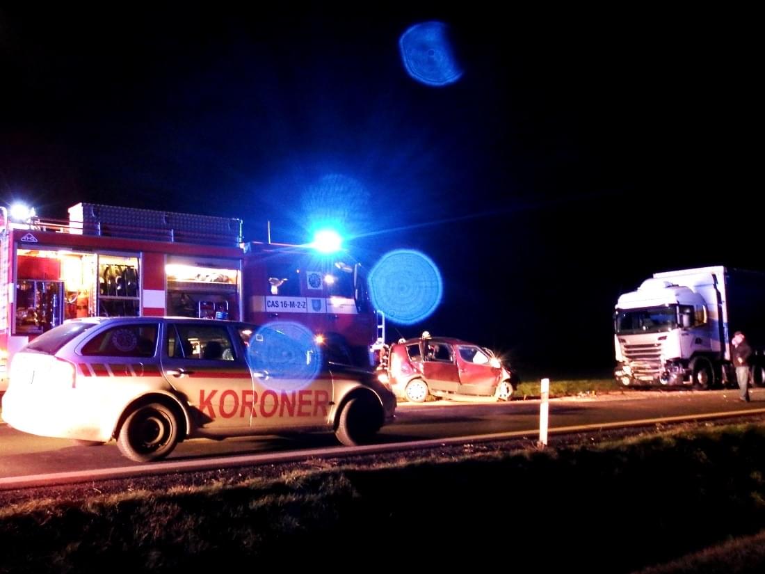 Dle předběžných informací policie vozidlo Škoda ze zatím nezjištěných příčin přejelo do protisměru a čelně se střetlo s kamionem Scania.