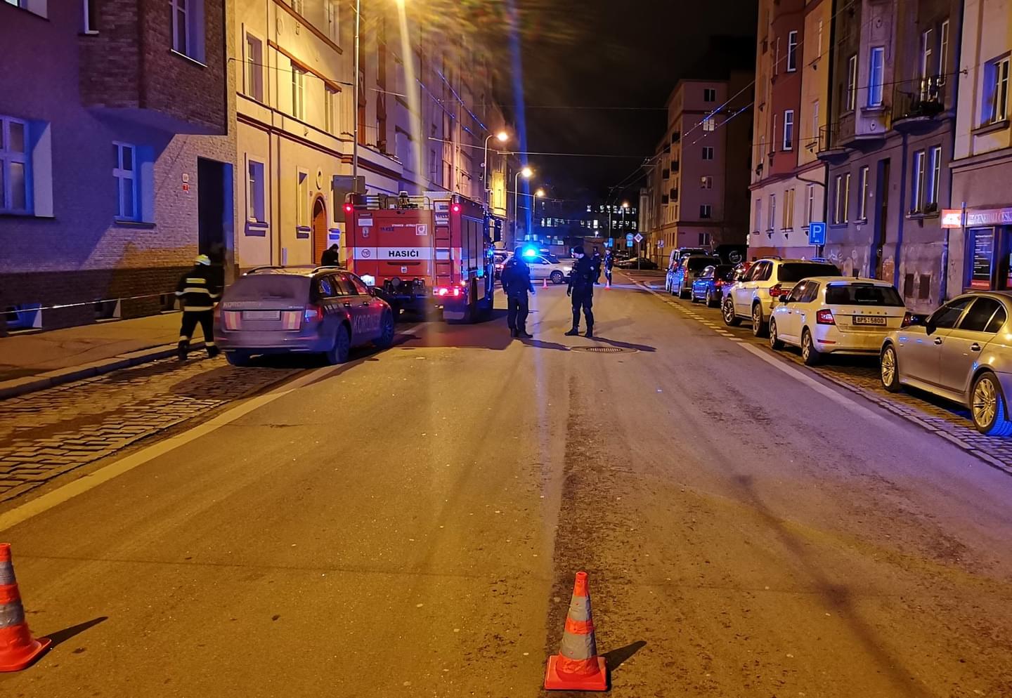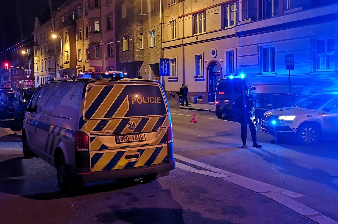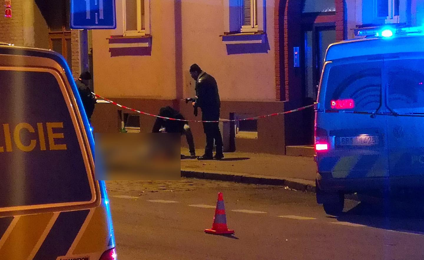 Na místě jsou i hasiči, kteří čekají až kriminalisté a koroner ukončí ohledání těla i místa, dojde k odvezení těla pohřební službou, aby poté mohli smýt velké množství krve, které zůstalo na chodníku.