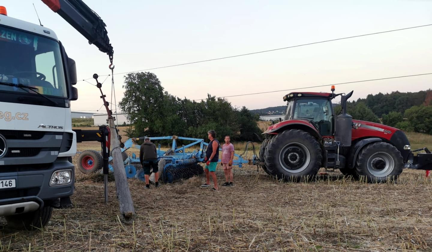Dnes v podvečer došlo na poli u Štěnovic ke střetu traktoru se sloupem elektrického vedení, kvůli čemuž došlo k omezení dodávky elektrického proudu do velkých částí tří vesnic.