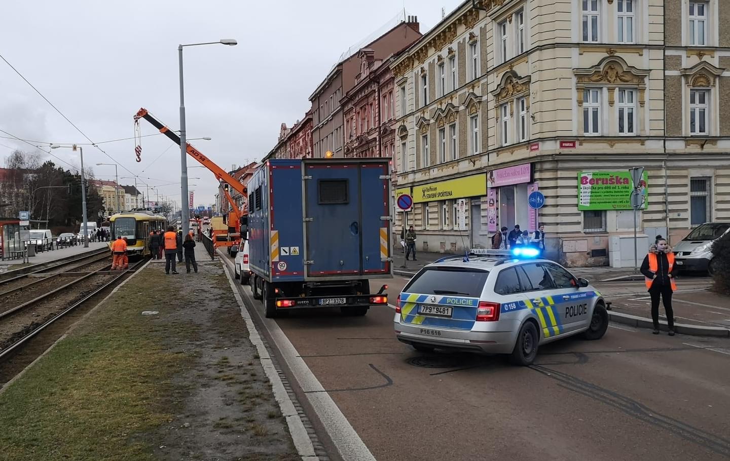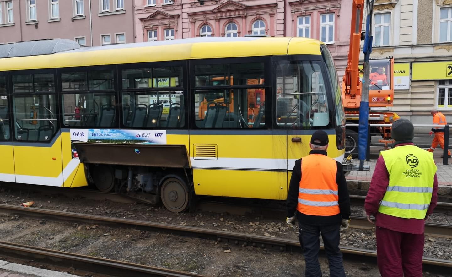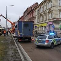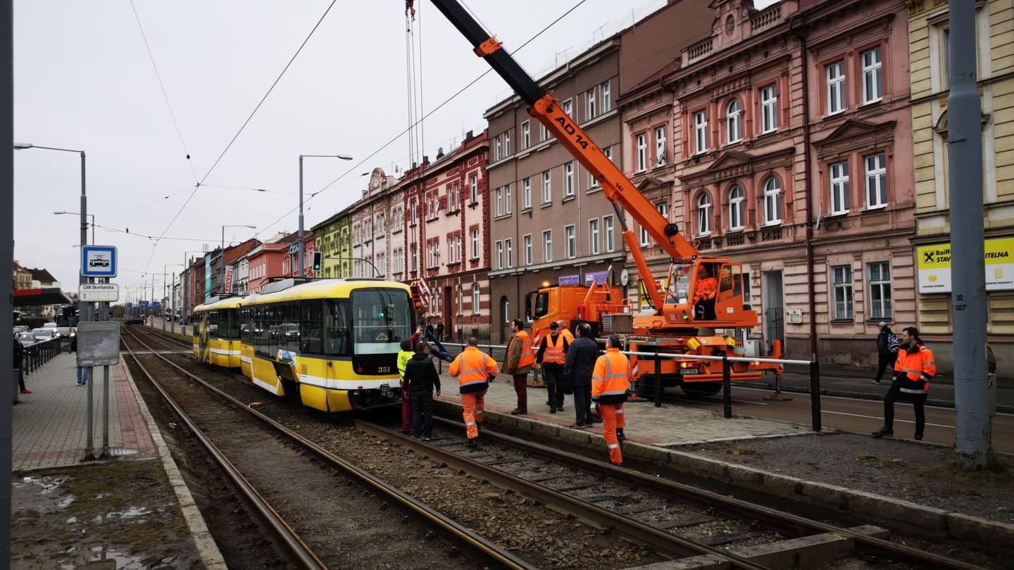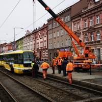 15,05 Tramvaj se podařilo pomocí jeřábu nakolejit, provoz by měl být brzy obnoven.