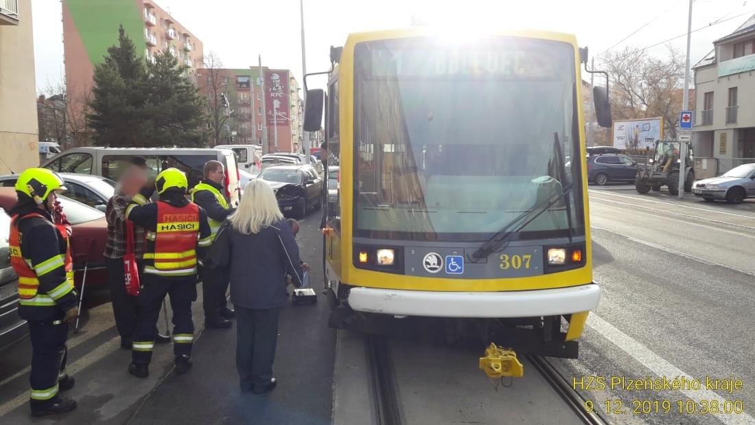 Dnes před půl jedenáctou dopoledne došlo na křižovatce Slovanské a Částkovy ulice v Plzni na Slovanech ke střetu tramvaje číslo 1 a osobního vozu Škoda Octavia.