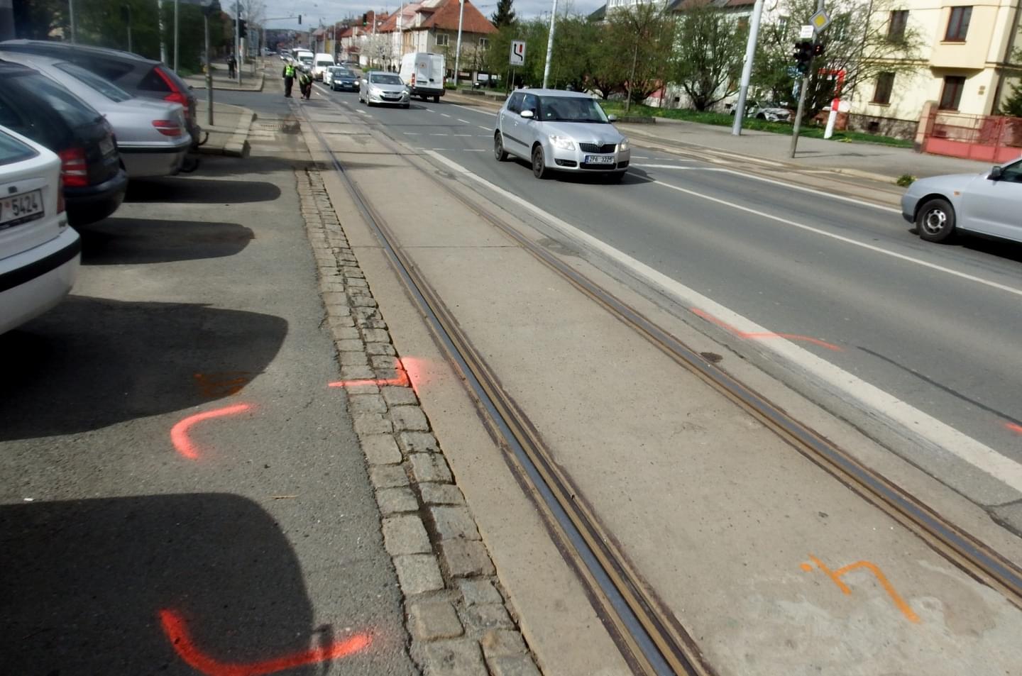 Řidič jedoucí z centra na Slovany chtěl odbočit doprava do Jasanové ulice, která je oblíbenou zkratkou do Malostranské. Zkřížil tak cestu zezadu přijíždějící tramvaji, která auto nabrala předkem a odtlačila skoro patnáct metrů, což je vidět na přiložené fotografii.