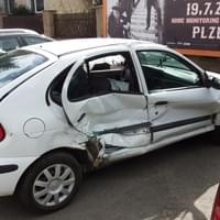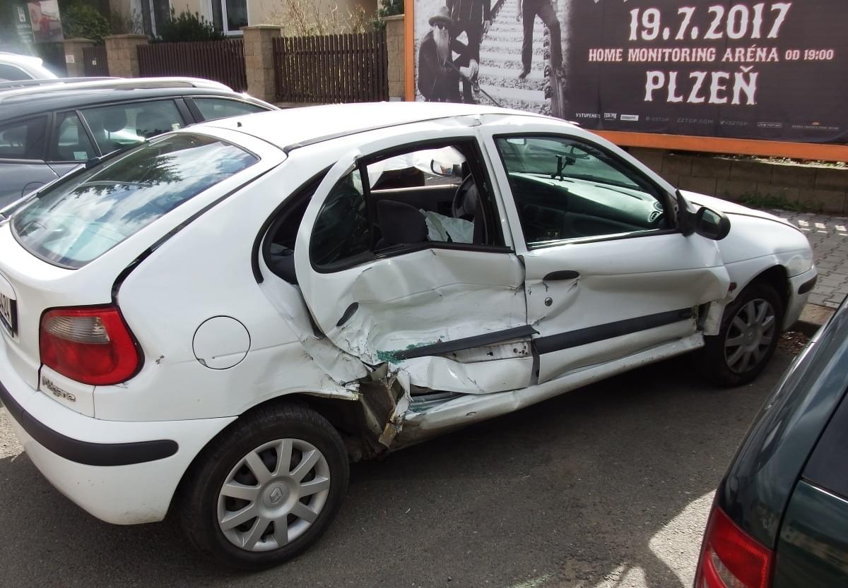 Dnes v půl třetí odpoledne došlo na Slovanské v Plzni k nehodě osobního vozu Renault Megane a tramvaje.