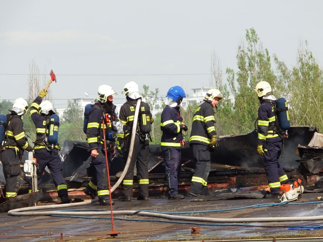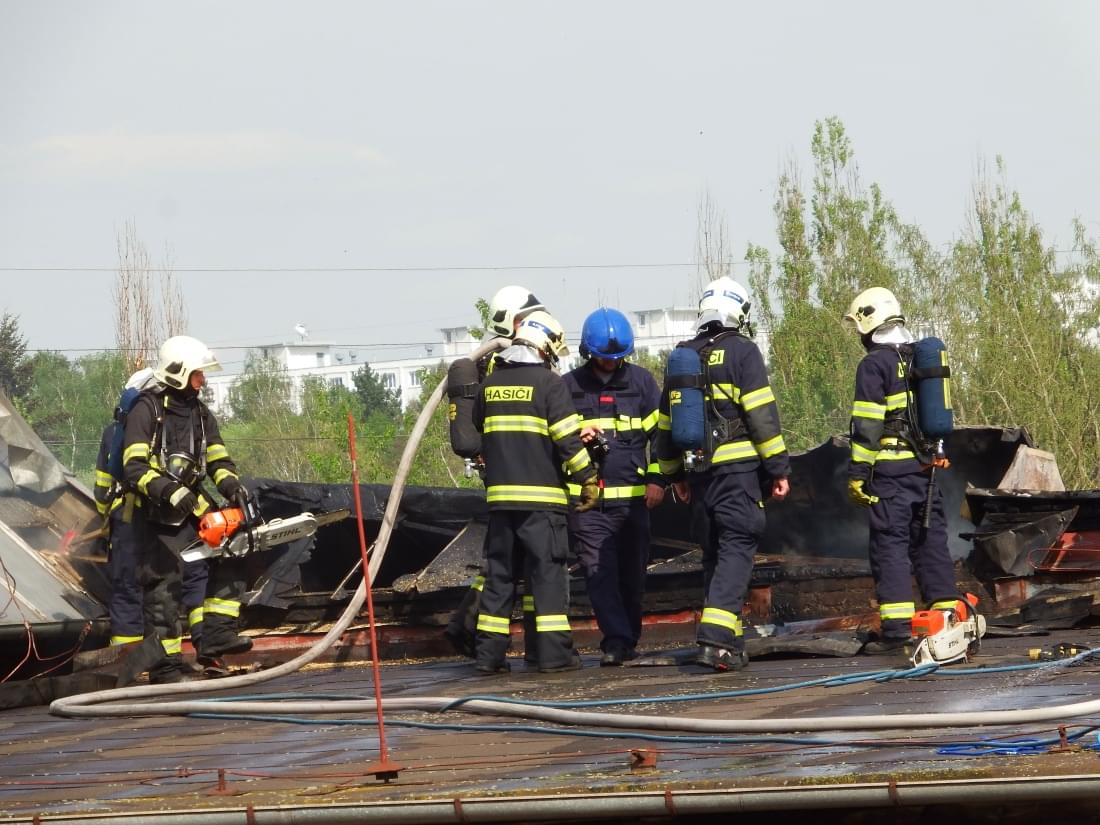 Hasiči nasadili hasící a řezací zařízení Cobra, s jehož pomocí rozebírají sendvičovou střechu a vyhledávají skrytá ohniska požáru. V současné chvíli mají požár pod kontrolou a probíhá dohašování.