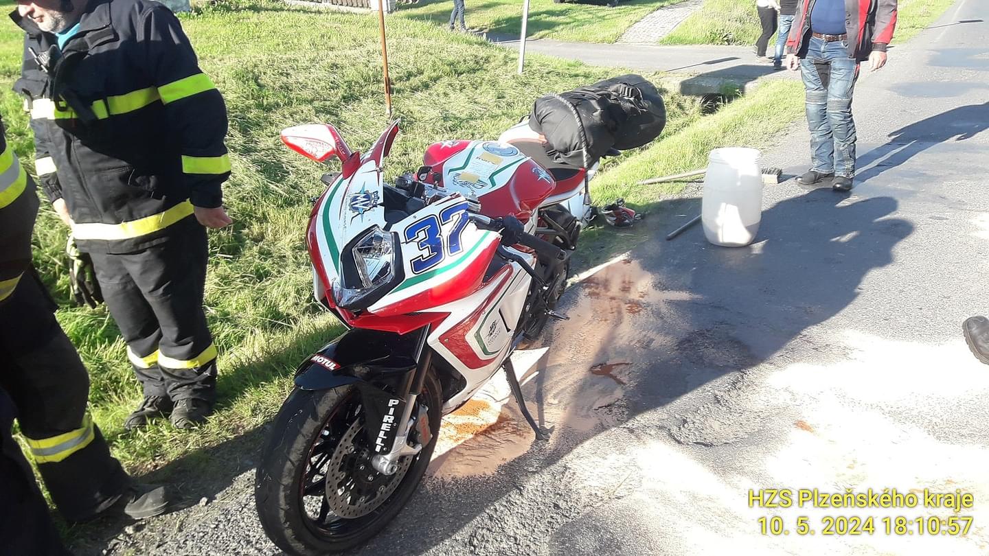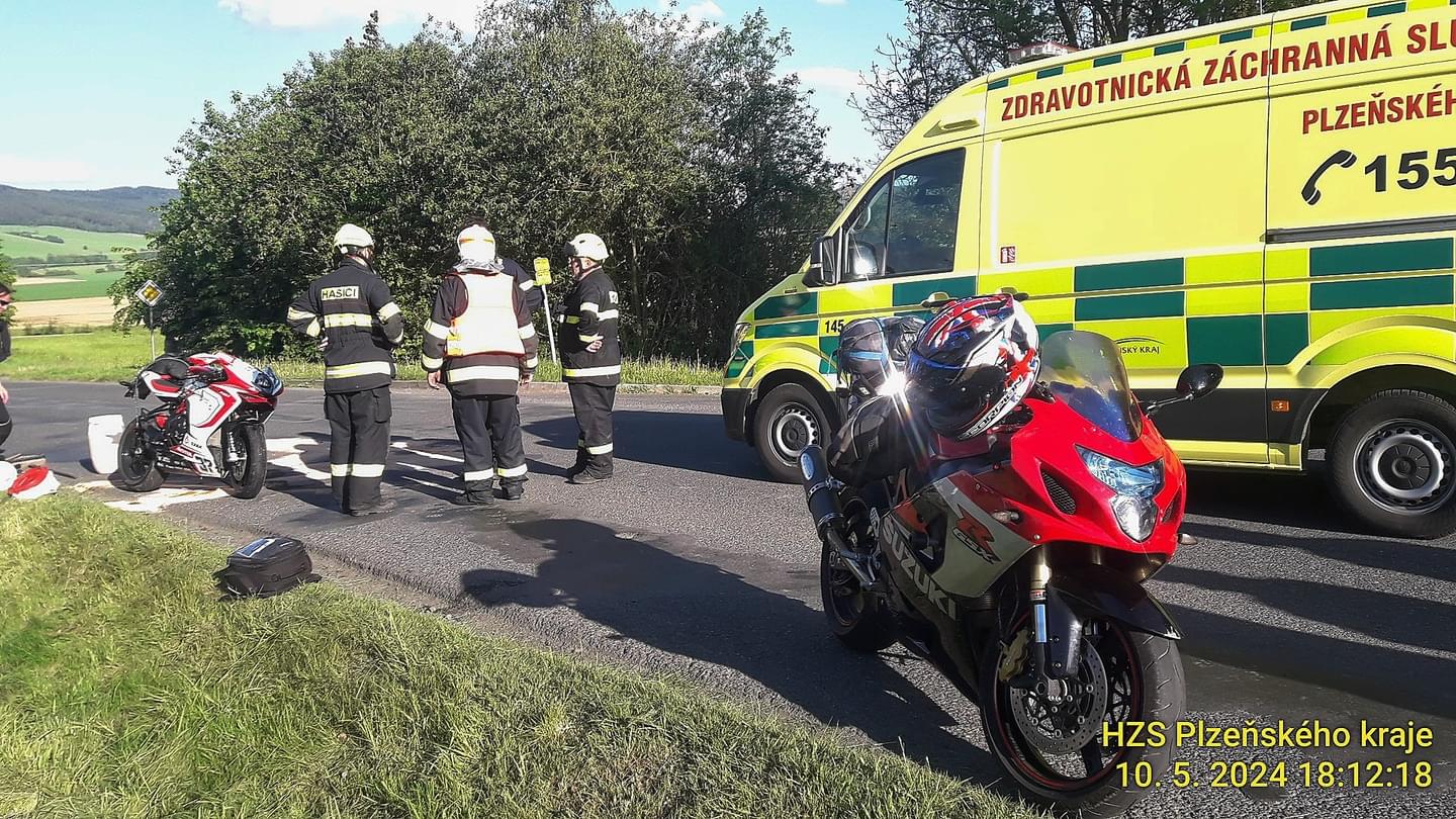 "Na místě zasahovala jednotka sboru dobrovolných hasičů Nýrsko a HZS z CHS Klatovy. Při příjezdu jednotky sboru dobrovolných hasičů byli již na místě záchranáři. Při nehodě byly dvě zraněné osoby a hasiči asistovali u jejich ošetřování a zároveň provedli posyp uniklých provozních kapalin i protipožární opatření," uvedl nám mluvčí hasičů s tím, že oba zranění motorkáři byli po ošetření transportováni do nemocnice.