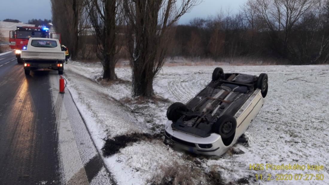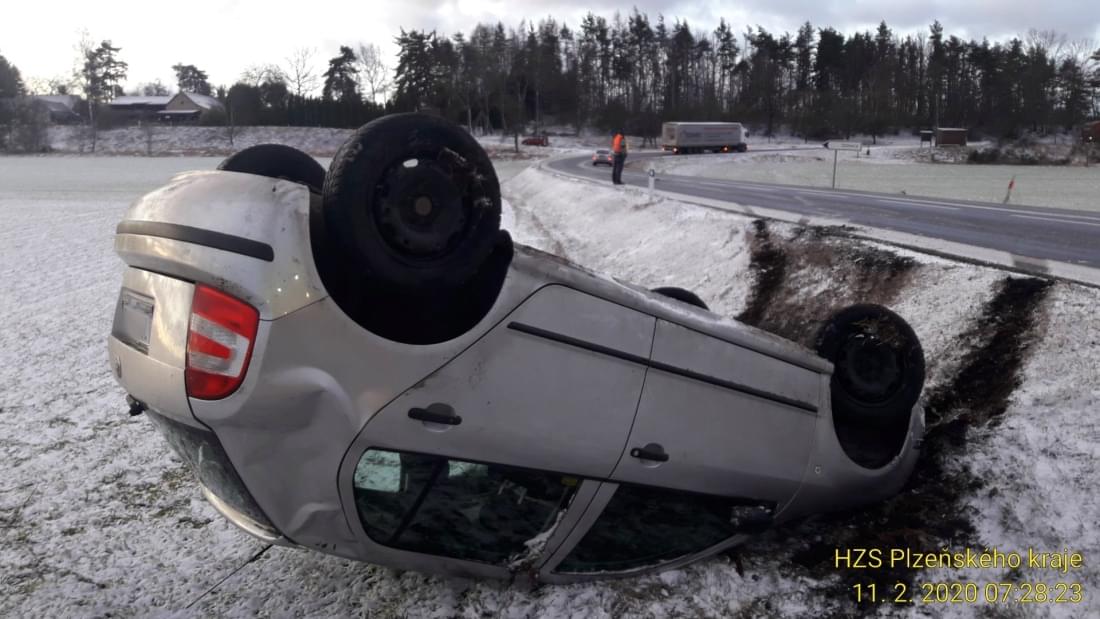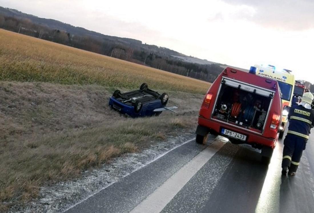 Po sedmé hodině vyjížděly všechny záchranné složky ke Korytnému rybníku u Oselců, kde zřejmě vlivem namrzlé vozovky havaroval do příkopu osobní vůz Škoda, který se převrátil na střechu. Jednu osobu si do péče převzali záchranáři.